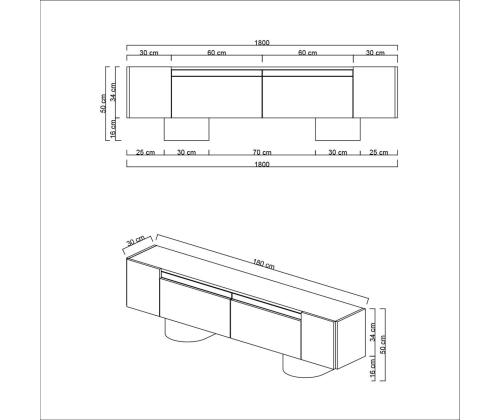 Width: 180 cm Height: 50 cm Depth: 30 cm