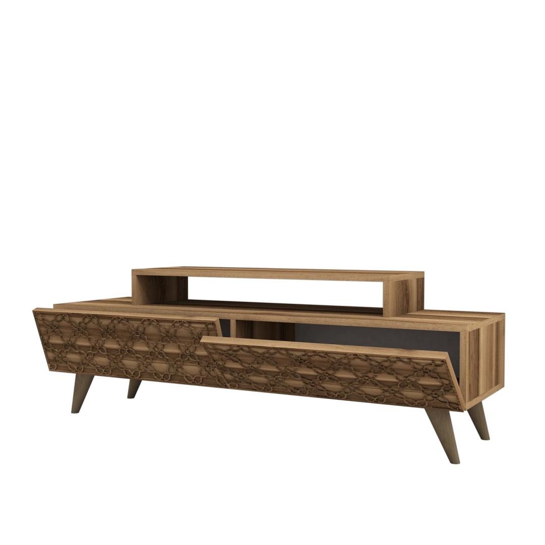 Välistage oma eluruumi kaasaegse ja stiilse teleripuldigaMuuda oma elutuba stiilseks ja kaasaegseks ruumiks meie teleripuldiga. See moodsa ja uudse kontseptsiooniga disainitud teleripult lisab elegantsi igasse ruumi. Selle stiilne ja rafineeritud disain uuendab koheselt teie meelelahutusruumi väljanägemist. Kvaliteetne käsitöö vastupidavuse ja stiili tagamiseksSee 100% melamiiniga kaetud puitlaastplaadist valmistatud telerialus on valmistatud kestma. 18 mm paksus tagab tugevuse ja stabiilsuse, samas kui 4 mm cnc-reljeef lisab unikaalse ja pilkupüüdva detaili. Plastikust jalad pakuvad täiendavat tuge ja tagavad, et teie teleripult püsib paigal. Rikkalik hoiuruum kõigi teie meelelahutusvajaduste jaoksTänu arvukatele riiulitele pakub see teleritugi palju ruumi oma meediaseadmete, mängukonsoolide, dvd-de ja muu jaoks. Hoidke oma elutuba korrastatuna ja segadusteta selle funktsionaalse ja praktilise mööbliesemega. Monitoorne disain teie mugavuse tagamiseksSeda televiisoripulka saab hõlpsasti seinale kinnitada, mis võimaldab teil luua oma elutoas õmblusteta ja puhta välimuse. Pähklipuidust värv lisab igasse ruumi soojust ja elegantsust, muutes selle mitmekülgseks valikuks, mis sobib iga sisustusstiiliga. Tehnilised üksikasjad:Materjal: Materjal: Materjal: Materjal: Materjal: Materjal: Materjal: Materjal: materjal: 100% melamiiniga kaetud puitlaastplaatPaksus: 18 mmCNC reljeef: 4 mmJalad: PlastistLaius: 140 cmKõrgus: 48,8 cmSügavus: 41. 8 cmVärv: PähklipuuTäienda oma elutuba meie moodsa ja stiilse teleripuldiga. Tänu vastupidavale konstruktsioonile, rohkele hoiuruumile ja mitmekülgsele disainile on see telerialus ideaalne täiendus igasse koju. Tellige oma juba täna ja muutke oma elutuba stiilseks ja funktsionaalseks oaasiks. Värv: Walnut