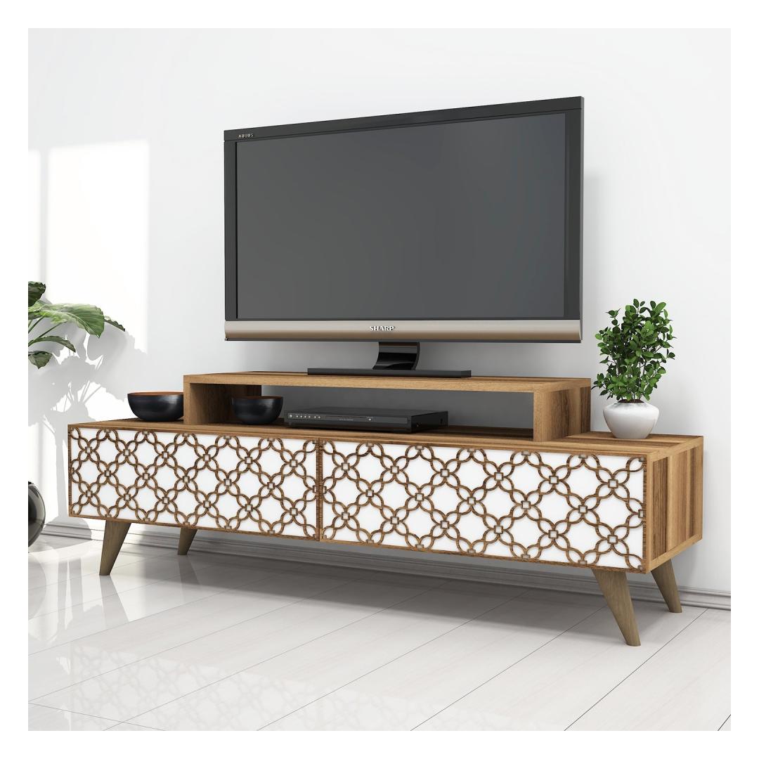 Välistage oma eluruumi kaasaegse ja stiilse teleripuldigaMuutke oma elutuba meie peen teleripuldi abil paeluvaks ja kutsuvaks ruumiks. See modernsete ja traditsiooniliste elementide täiusliku seguga disainitud ese tõstab teie kodu esteetilist atraktiivsust vaevata. Võrratu vastupidavus ja kvaliteet100% melamiiniga kaetud puitlaastplaadist valmistatud teleripult on valmistatud kestma. 18 mm paksus tagab erakordse tugevuse, samas kui 4 mm cnc-reljeef lisab elegantsi. Võite olla kindel, et see statiiv peab vastu ja jääb teie kodu keskpunktiks aastateks.Funktsionaalne ja mitmekülgne disainTänu arvukatele riiulitele pakub see televiisoripult piisavalt ruumi kõigi teie meediaseadmete, dvd-de ja muude oluliste esemete jaoks. Hoidke oma elutuba korras ja organiseeritud, esitledes samal ajal avatud riiulitel oma lemmikdekoratiivseid esemeid. Stiilne ja pilkupüüdevPähklipuu ja valge värvi kombinatsioon loob silmatorkava kontrasti, lisades igasse ruumi elegantsi. Kaasaegne disain koos vihje uuenduslikkusega avaldab kindlasti muljet teie külalistele ja teeb teie kodu sisustuses silmapaistva avalduse. Lihtne paigaldamine ja paindlikkusMeie televiisoripulka saab hõlpsasti seinale kinnitada, tagades stabiilsuse ja ohutuse. Olenemata sellest, kas eelistate seda vabalt seisvat või paigaldatud, pakub see statiiv teile paindlikkust, et valida teie ruumi jaoks ideaalne seadistus. Tehnilised üksikasjad:Materjal: Materjal: materjal: 100% melamiiniga kaetud puitlaastplaatPaksus: 18 mmCNC reljeef: 4 mmJalad: PlastistLaius: 140 cmKõrgus: 48,8 cmSügavus: 41. 8 cmVärv: Pähklipuu ja valgeKontseptsioon: Kaasaegne - uudsus, Ameerika traditsiooniline, Damask, Lill Värv: Walnut White