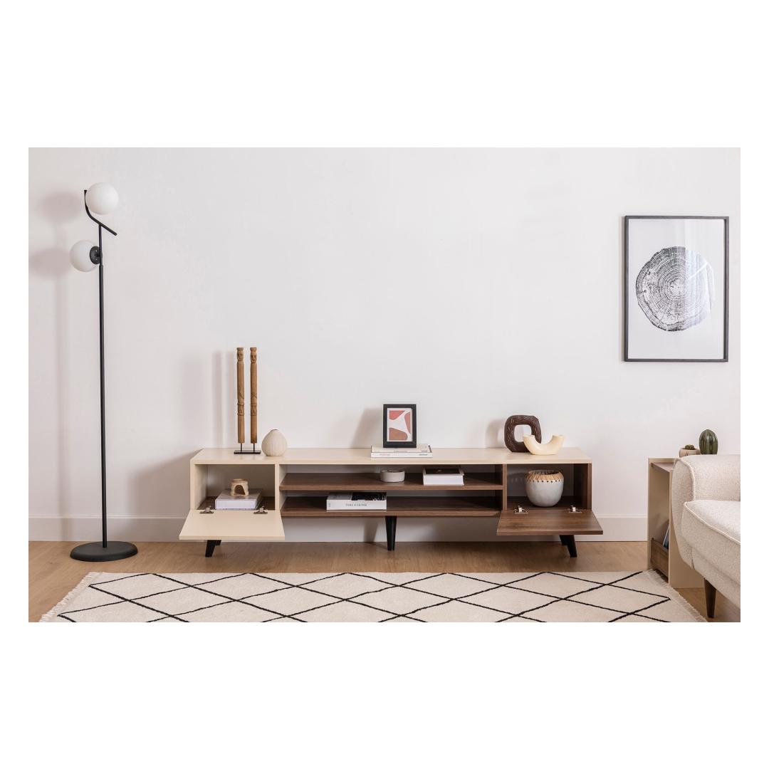 Muuda oma elutuba stiilseks ja organiseeritud ruumiks meie uimastava televiisoripulga abil. See teleripult ei ole lihtsalt mööblitükk, see on elegantsi ja elegantsuse avaldus. Pähklipuu ja beeži värvi täiuslik segu lisab teie kodu sisustusse soojust, luues hubase ja kutsuva atmosfääri, mida teie ja teie lähedased saavad nautida.Tõstke oma elutubaHüvasti segadusele ja tere korraldusele meie teleripuldiga. See statiiv, millel on piisavalt hoiuruumi kõigi teie oluliste meediatarvete jaoks, hoiab teie elutoa korras ja korrastatuna, võimaldades teil rahulikult lõõgastuda ja lõõgastuda. Metallraam lisab disainile modernsust, muutes selle mitmekülgseks esemeks, mis täiendab mis tahes sisustusstiili. Kvaliteetne käsitööValmistatud 100% melamiiniga kaetud puitlaastplaadist, on see telerialus ehitatud kestma. Paksus 18 mm tagab vastupidavuse ja tugevuse, samas lisab elegantse disain teie ruumile elegantsust. Suurepärased mõõtmed - 180 cm laius, 37 cm pikkus ja 45 cm kõrgus - pakuvad piisavalt ruumi teie telerile, meediamängijatele ja dekoratiivsetele esemetele. Tehnilised üksikasjad:Materjal: Materjal: Materjal: Materjal: Materjal: Materjal: Materjal: Materjal: materjal: 100% melamiiniga kaetud puitlaastplaatPaksus: 18mmMetallraam lisab stabiilsustMõõdud: 180cm (laius) x 37cm (pikkus) x 45cm (kõrgus): 180cm (laius) x 37cm (pikkus) x 45cm (kõrgus)Värv: pähkelpuu ja beežÄrge jätke kasutamata võimalust tõsta oma elutuba meie suurepärase televiisoristendiga. Tellige oma juba täna ja kogege oma kodus stiili ja funktsionaalsuse täiuslikku segu. Värv: Walnut Beige