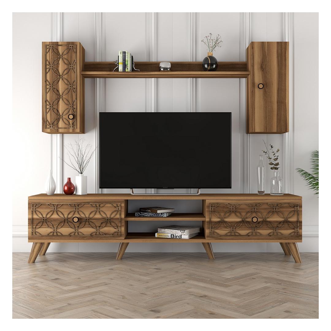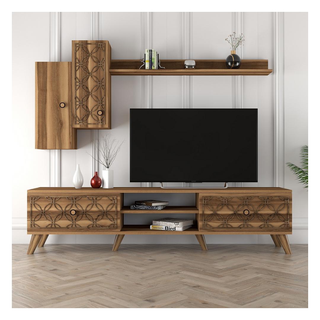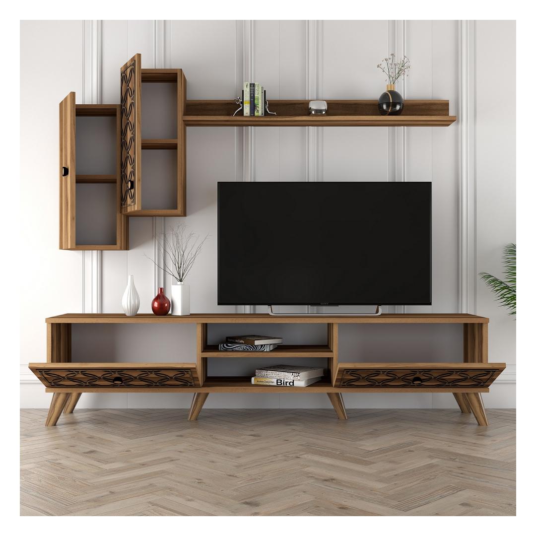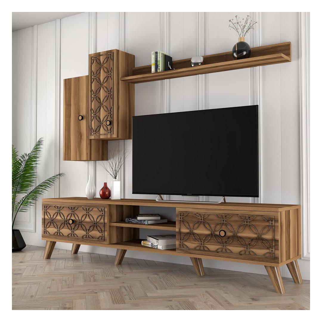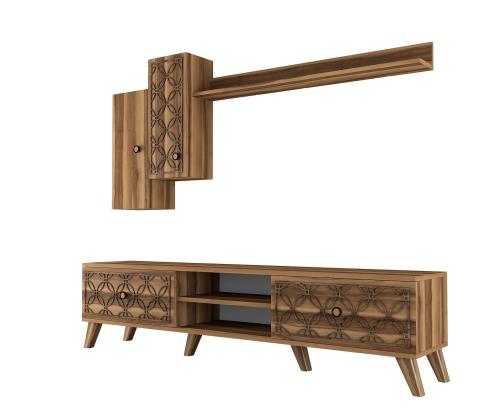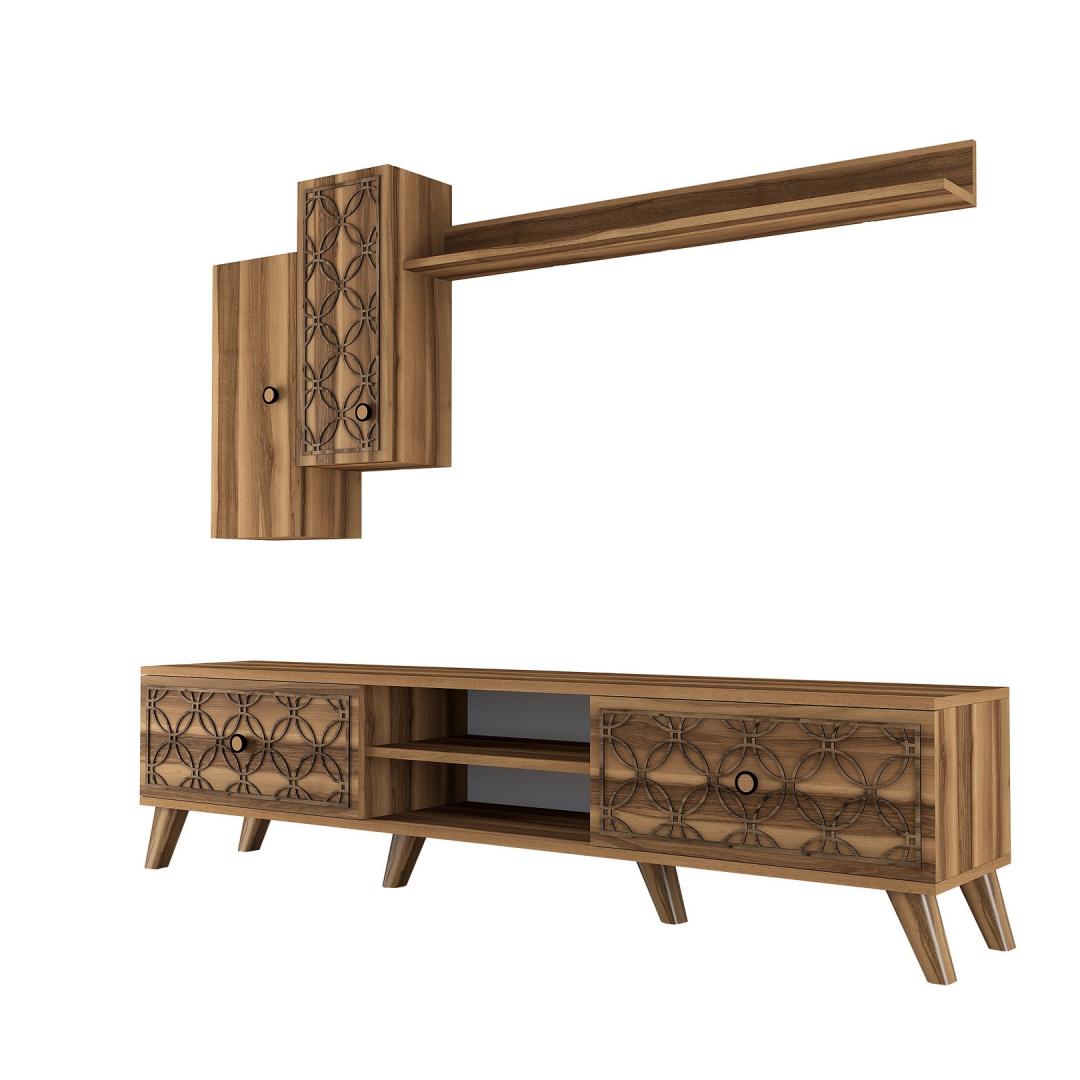 Muuda oma elutuba stiilseks ja funktsionaalseks ruumiks meie suurepärase telerikapi abil. Valmistatud 100% melamiinkattega puitlaastplaadist, on see telerikapp mitte ainult vastupidav, vaid lisab ka elegantsi teie kodu sisustusse.Elegantne disain kaasaegsetele kodudeleSelle telerikapi sujuv disain, millel on 4 mm CNC-reljeef ja plastjalad, kiirgab rafineeritust ja stiili, muutes selle ideaalseks lisandiks igasse kaasaegsesse koju. Pähklipuu värv lisab teie eluruumile soojust ja rikkust, luues hubase atmosfääri, kus teie ja teie pere saavad nautida.Mitmekülgne ja praktilineLaiusega 180 cm, kõrgusega 44 cm ja sügavusega 35 cm pakub see telerikapp piisavalt hoiuruumi teie meedia seadmete ja aksessuaaride jaoks. Kaasaegne seina riiul ja kapid pakuvad täiendavaid hoiuvõimalusi, võimaldades hoida teie elutuba organiseerituna ja korras.Lihtne paigaldadaSeda telerikappi saab kergesti seina kinnitada, et tagada lisastabiilsus ja ohutus. Kapi suurus on 26,5 cm laius, 63 cm kõrgus ja 21,8 cm sügavus (2 tk), mis pakub piisavalt hoiuruumi teie asjadele, hoides teie elutoa puhtana ja korras.Tehnilised andmed:Materjal: 100% melamiinkattega puitlaastplaatPaksus: 18 mmVärv: PähklipuuTelerikapi suurus: Laius: 180 cm, Kõrgus: 44 cm, Sügavus: 35 cmSeina riiuli suurus: Laius: 120 cm, Kõrgus: 14,2 cm, Sügavus: 13,6 cmKapi suurus: Laius: 26,5 cm, Kõrgus: 63 cm, Sügavus: 21,8 cm (2 tk)Palju riiuleid hoiustamiseksUuenda oma elutuba selle hämmastava telerikapiga ja loo ruum, mis on nii stiilne kui ka funktsionaalne. Ära jäta kasutamata võimalust tõsta oma kodu sisustust ja teha avaldus meie kaasaegse ja elegantse telerikapiga. Värv: Walnut