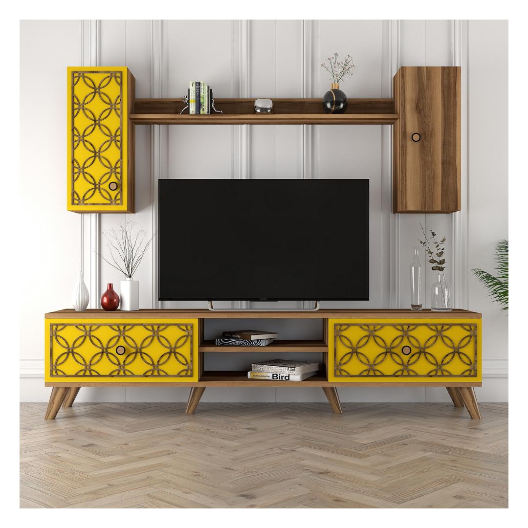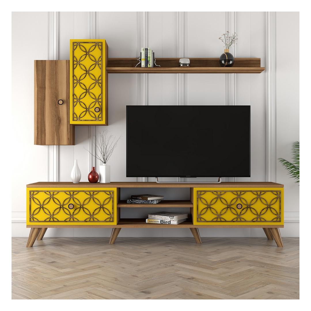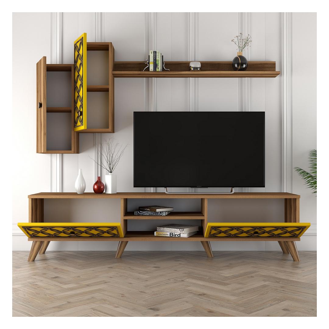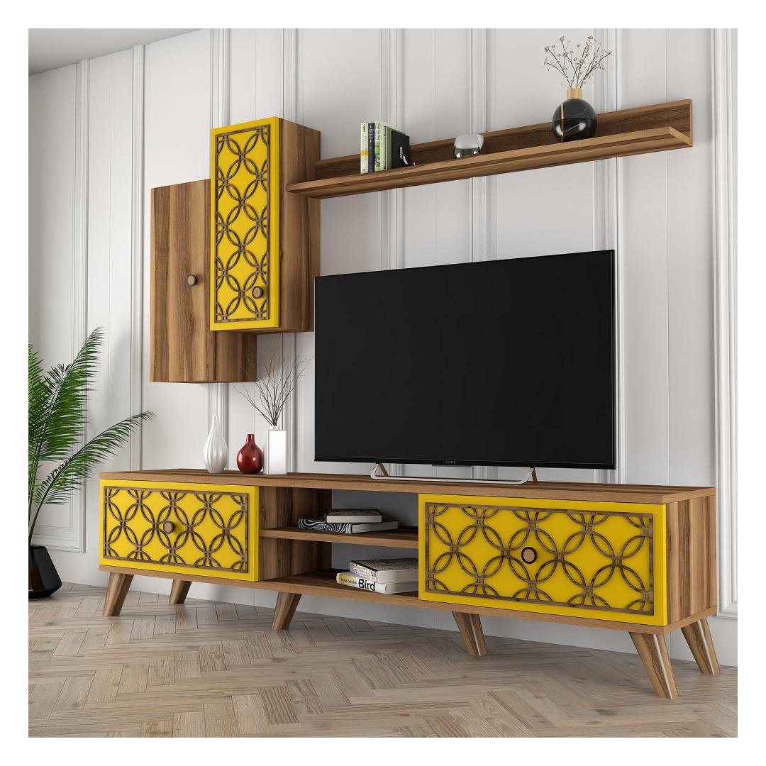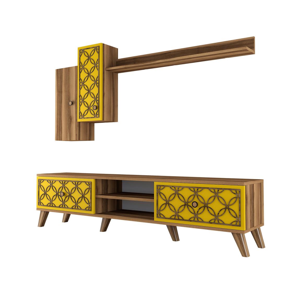 Muuda oma eluruum stiili ja rafineerituse pühamuks meie suurepärase telerialuse abil. Valmistatud 100% melamiinkattega puitlaastplaadist, kiirgab see ese luksust ja elegantsi. Peene 4 mm CNC-reljeefdetail lisab kunstilisust, samas kui plastjalad tagavad stabiilsuse ja vastupidavuse.Tõsta oma elutubaTehke avaldus selle hämmastava telerialusega, mille laius on 180 cm, ideaalne teie televiisori ja dekoratsiooni esitlemiseks. Kaasaegne seina riiul ja kapid pakuvad piisavalt hoiuruumi kõigi teie meelelahutuse tarvikute jaoks, hoides teie ruumi organiseerituna ja segaduseta.Omaks võtke boheemlaslik šikkOmaks võtke boheemlaslik vaim selle telerialuse ainulaadse disainikontseptsiooniga, mis on inspireeritud boheemlusest, damaskist ja lillemotiividest. Soojad pähklitooni ja elavad kollased värvid lisavad teie ruumile isikupära, luues hubase ja kutsuva atmosfääri.Tehnilised andmed:Materjal: 100% melamiinkattega puitlaastplaatPaksus: 18 mm4 mm CNC-reljeefdetailPlastjalad stabiilsuse tagamiseksTelerialuse suurus: L180 cm x K44 cm x S35 cmSeina riiuli suurus: L120 cm x K14.2 cm x S13.6 cmKapi suurus: L26.5 cm x K63 cm x S21.8 cm (2 tk)Palju riiuleid hoiustamiseksSaab kinnitada seina külge lisaturvalisuse tagamiseksVärv: Pähkel ja kollaneNaudi luksust ja rafineeritust meie suurepärase telerialusega, mis on hädavajalik igas modernses kodus. Uuenda oma eluruumi selle silmapaistva esemega, mis ühendab stiili, funktsionaalsuse ja kunstilisuse. Värv: Walnut Yellow