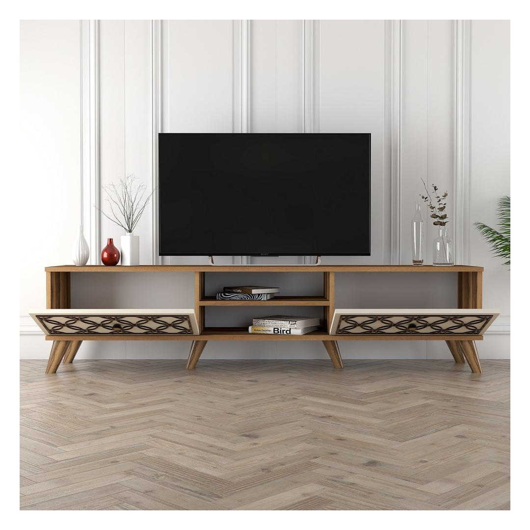 Transformeeri oma eluruum kaasaegse ja stiilse teleripuldigaUuendage oma elutuba meie uimastava teleripuldiga, mis ühendab endas kaasaegse disaini ja funktsionaalsuse. See teleripult on ideaalne täiendus igasse koju, pakkudes elegantset ja stiilset lahendust teie meelelahutusvajadustele. Tõstke oma kodu kaunistust elegantsi juurdeSee 100% melamiiniga kaetud puitlaastplaadist valmistatud teleripult ei ole mitte ainult vastupidav, vaid ka elegantse väljanägemisega. Pähklipuu ja kreemi värvikombinatsioon lisab teie eluruumile rafineeritust, muutes selle iga ruumi keskpunktiks.Rikkalik panipaik kõigile teie meelelahutuslikele esmatähtsatele asjadeleArvukate riiulitega pakub see teleripult piisavalt ruumi teie meediaseadmete, mängukonsoolide, dvd-de ja muu jaoks. Hoidke oma elutuba korrastatuna ja segadusteta, kuid samas on teil lihtne juurdepääs kõigile oma meelelahutuslikele esmatähtsatele esemetele. Muuduvuslik disain teie mugavuse tagamiseksSeda telerialust saab hõlpsasti seinale kinnitada, tagades stabiilsuse ja turvalisuse teie telerile ja teistele seadmetele. Plastikust jalad lisavad stiili ja stabiilsust, mistõttu sobib see ideaalselt igasse moodsasse või traditsioonilisse kodudekoratsiooni. Tehnilised üksikasjad:Materjal: Materjal: Materjal: Materjal: Materjal: Materjal: Materjal: Materjal: materjal: 100% melamiiniga kaetud puitlaastplaatPaksus: 18 mm4 mm CNC reljeef lisab visuaalset atraktiivsustPlastist jalad stabiilsuse tagamiseksLaius: 180 cm, kõrgus: 44 cm, sügavus: 35 cmVärv: pähkelpuu ja kreemUuendage oma elutuba meie moodsa ja stiilse teleripuldiga. Tänu oma elegantsele disainile, rohkele hoiuruumile ja mitmekülgsele funktsioonile on see telerialus ideaalne täiendus igasse koju. Muutke oma elutuba juba täna ja nautige segadusteta ja korrastatud meelelahutusruumi. Värv: Walnut Cream