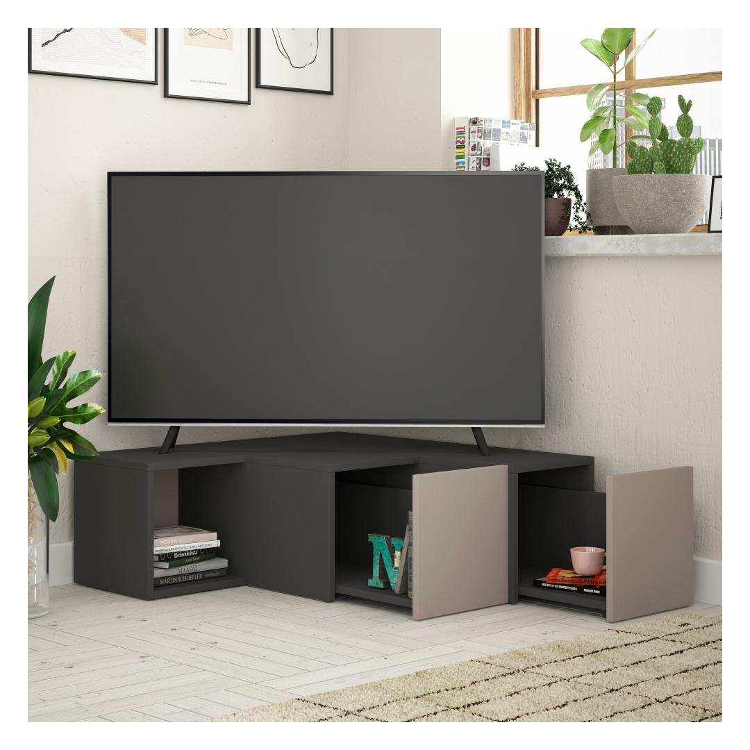 TV Stand Compact - Anthracite, Light Mocha