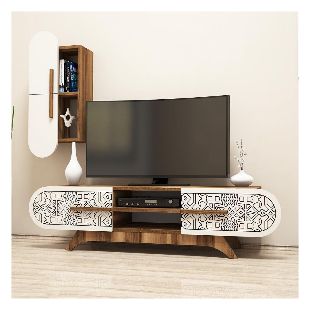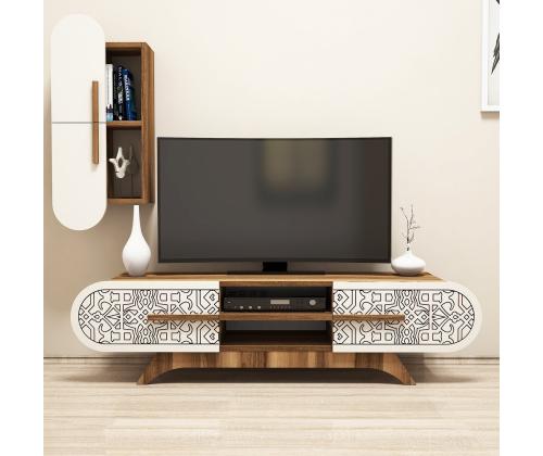 TV laud Defne - Walnut, Cream
