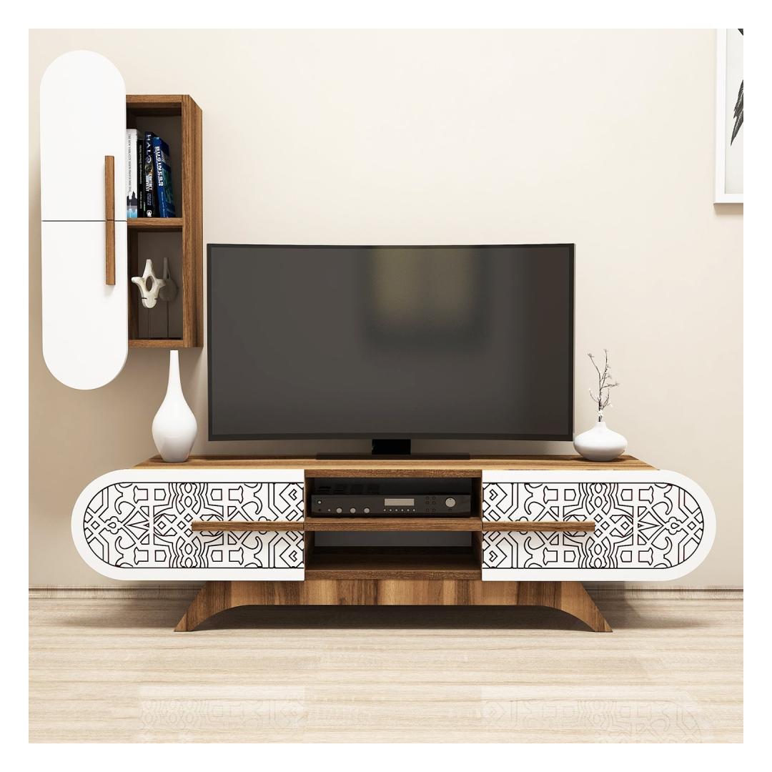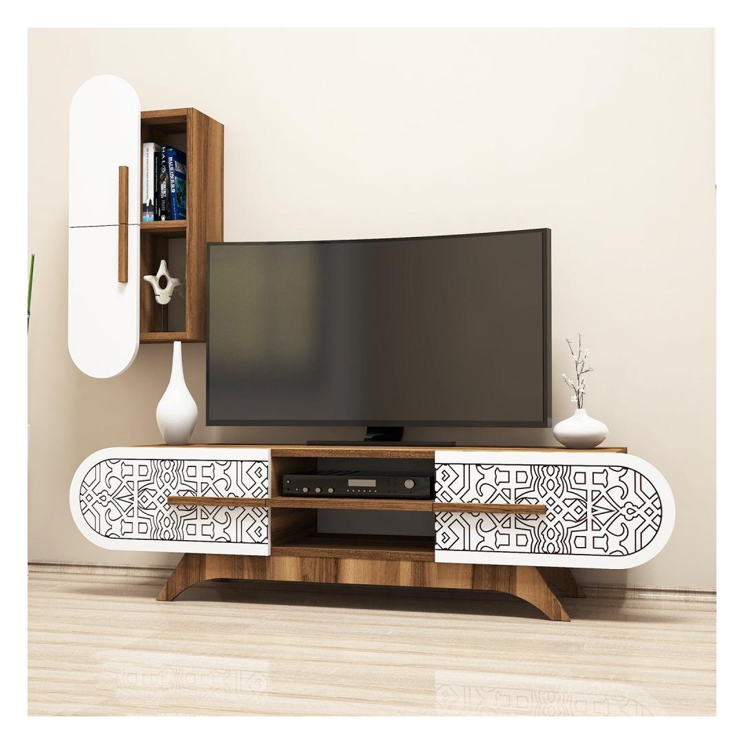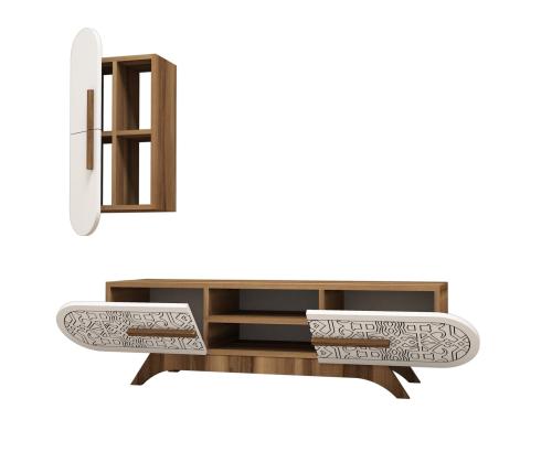 TV laud Defne - Walnut, White