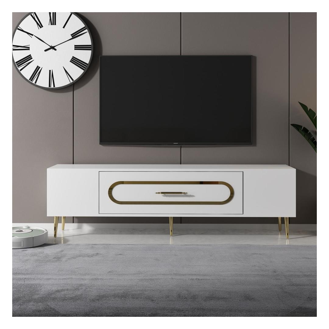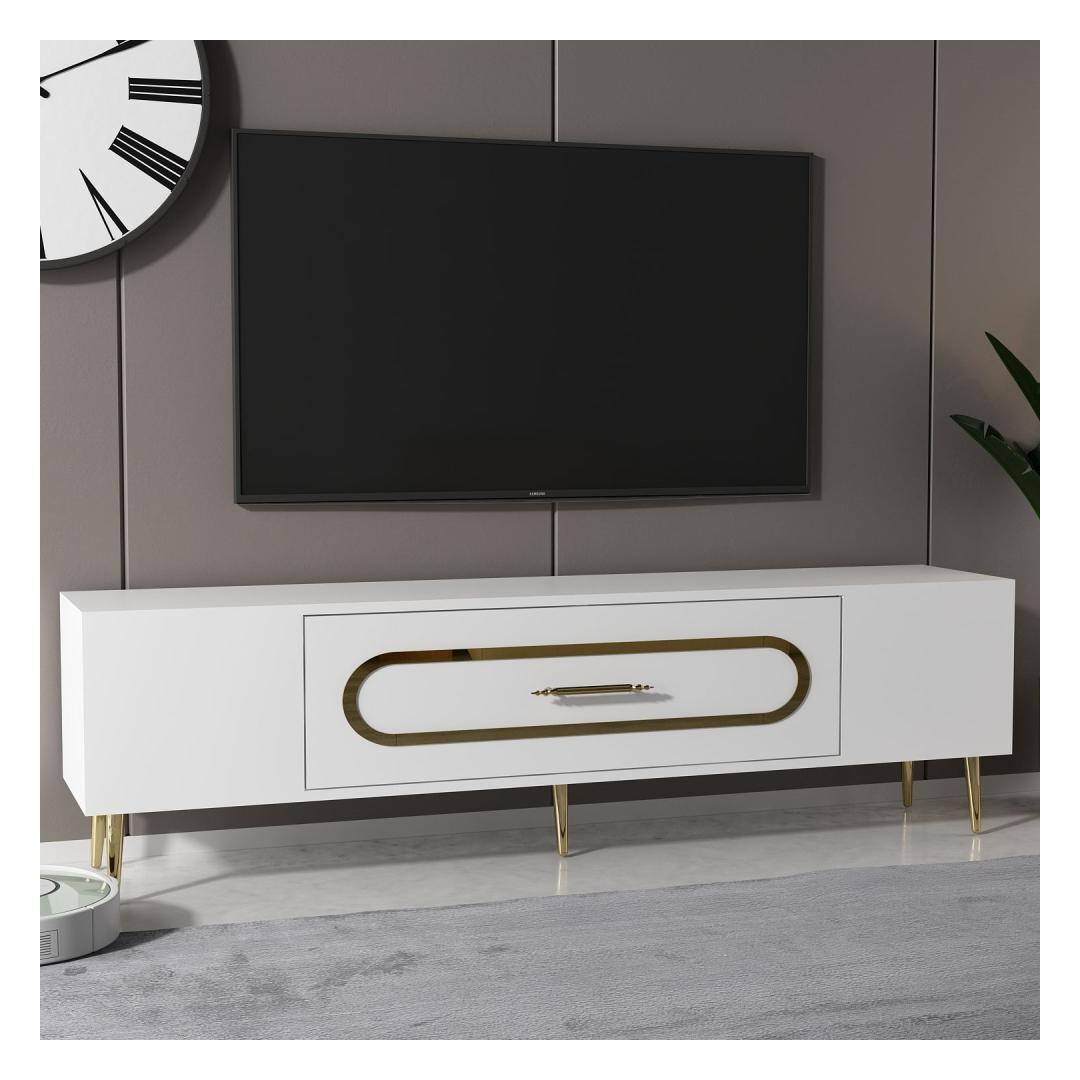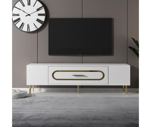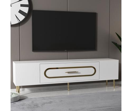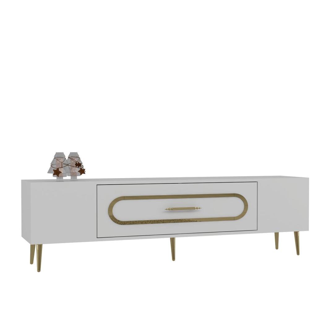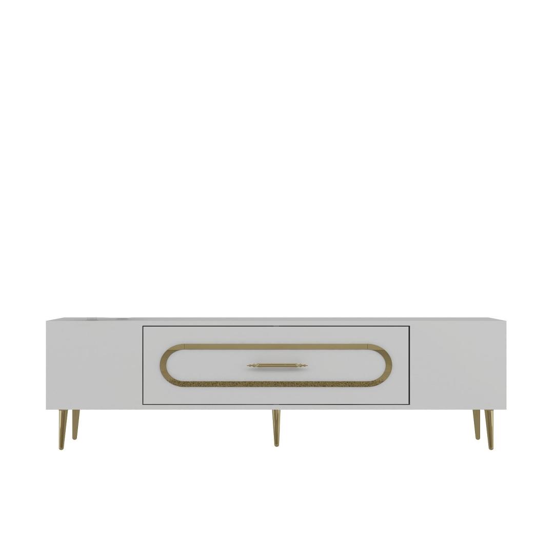 Muuda oma elutuba luksuslikuks ja elegantseks ruumiks meie uimastava teleripuldi abil. See 100% melamiiniga kaetud puitlaastplaadist valmistatud telerialus ei ole mitte ainult vastupidav, vaid ka uskumatult stiilne. Valge ja kuldne värvikombinatsioon lisab igasse ruumi elegantsust, muutes selle ideaalseks keskpunktiks teie meelelahutusruumis. Tõstke oma ruumi ülesHüvasti segadusele ja tere korraldusele meie ruumika teleripuldiga. See 150 cm laiune, 48,2 cm kõrge ja 29,6 cm sügavune statiiv pakub piisavalt ruumi kõigi teie oluliste meediakanalite jaoks. 15 cm jalad lisavad kaasaegse tooni, tagades samas stabiilsuse ja toe teie telerile. Versatiivne disainOlenemata sellest, kas eelistate oma teleristatiivi põrandale või seinale paigaldada, see mitmekülgne tükk vastab teie vajadustele. Võimalus kinnitada see seinale annab teile paindlikkuse kohandada oma ruumi ja luua ainulaadne välimus, mis sobib teie stiiliga. Tehnilised üksikasjad:Materjal: Materjal: Materjal: Materjal: Materjal: Materjal: Materjal: Materjal: materjal: 100% melamiiniga kaetud puitlaastplaatMõõdud: Laius 150 cm, kõrgus 48. 2 cm, sügavus 29. 6 cmJala kõrgus: 15 cmVärv: valge ja kuldneSaab kinnitada seinale, et lisada stabiilsust ja kohandada seda vastavalt vajaduseleUuendage oma elutuba meie teleripuldiga ja kogege täiuslik segu funktsionaalsusest ja stiilist. Ärge jätke kasutamata seda võimalust, et tõsta oma ruumi ja luua luksuslik atmosfäär, kuhu teile meeldib koju tulla. Värv: White Gold