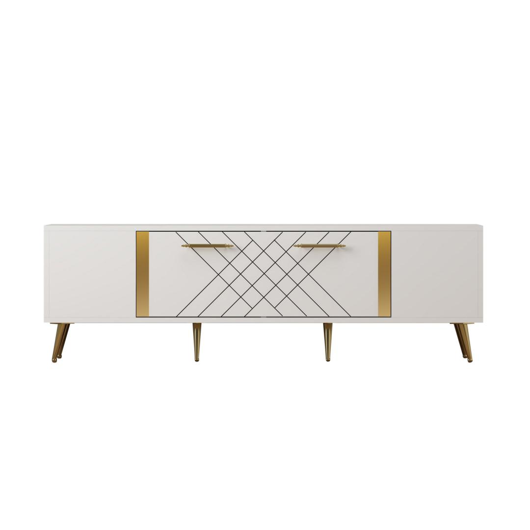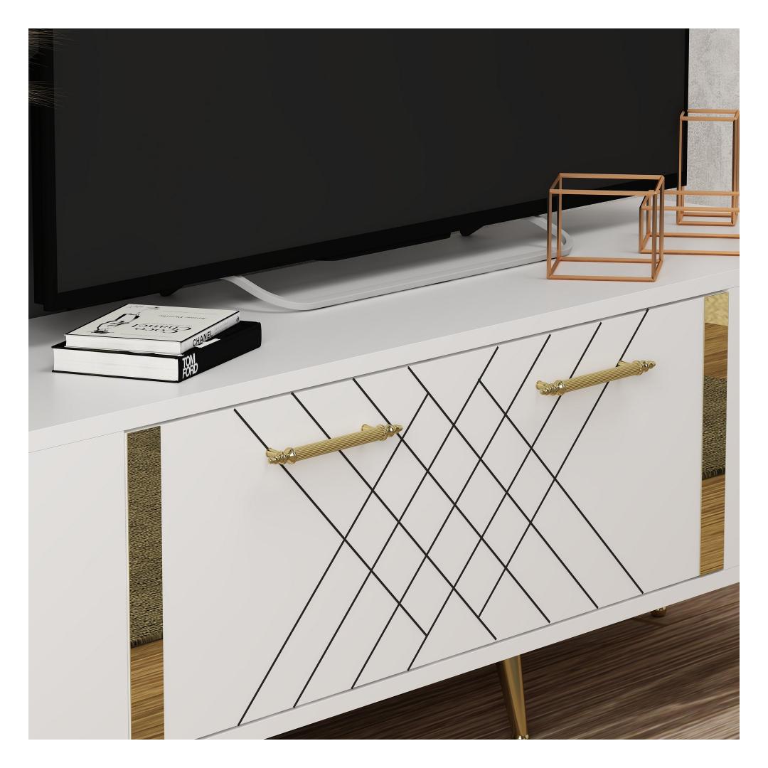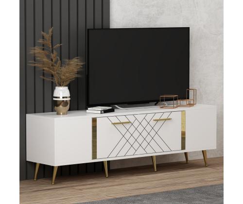 Välistage oma eluruumi kaasaegse ja stiilse teleripuldigaUuendage oma elutuba meie uimastava teleripuldiga, mis ühendab endas kaasaegse disaini ja praktilisuse. See teleripult on ideaalne täiendus igasse koju, pakkudes elegantset ja stiilset lahendust teie meelelahutusvajaduste jaoks. Oma unikaalse kontseptsiooniga kaasaegse uudsuse ja argiilmustriga muutub see koheselt teie eluruumi keskpunktiks.Kõrgendage oma stiili elegantsi puudutusegaSee 100% melamiiniga kaetud puitlaastplaadist valmistatud telerialus ei ole mitte ainult vastupidav, vaid ka vastupidav kriimustustele, plekkidele ja veekahjustustele. 18 mm paksus tagab stabiilsuse ja pikaealisuse, mis teeb sellest usaldusväärse mööblieseme aastateks. Valge ja kuldne värv lisab teie tuppa elegantsi ja elegantsi, luues luksusliku atmosfääri. Rikkalik panipaik teie meelelahutusvahendite jaoksTänu arvukatele riiulitele ja täiendavale hoiuruumile pakub see teleripult palju ruumi oma meediaseadmete, dvd-de, raamatute ja muude aksessuaaride organiseerimiseks. Hoidke oma elutuba segadusteta ja korrastatuna selle teleripuldi pakutavate mugavate hoiuvõimalustega. Jalgade kõrgus 15 cm lisab elegantsust ja võimaldab hõlpsasti all puhastada. Tehnilised üksikasjad:Materjal: Materjal: Materjal: Materjal: Materjal: Materjal: Materjal: Materjal: materjal: 100% melamiiniga kaetud puitlaastplaatPaksus: 18mmLaius: 150cmKõrgus: 48. 2cmSügavus: 35cmJala kõrgus: 15cmVärv: valge ja kuldneKontseptsioon: Kaasaegne - uudsus, Argyle musterUuendage oma eluruumi meie moodsa ja stiilse teleripuldiga. Tänu vastupidavale konstruktsioonile, rohkele panipaigale ja elegantsele disainile on see ideaalne täiendus igasse koju. Ärge jätke kasutamata seda võimalust suurendada oma meelelahutuskogemust ja luua oma elutuppa luksuslik atmosfäär. Värv: White Gold