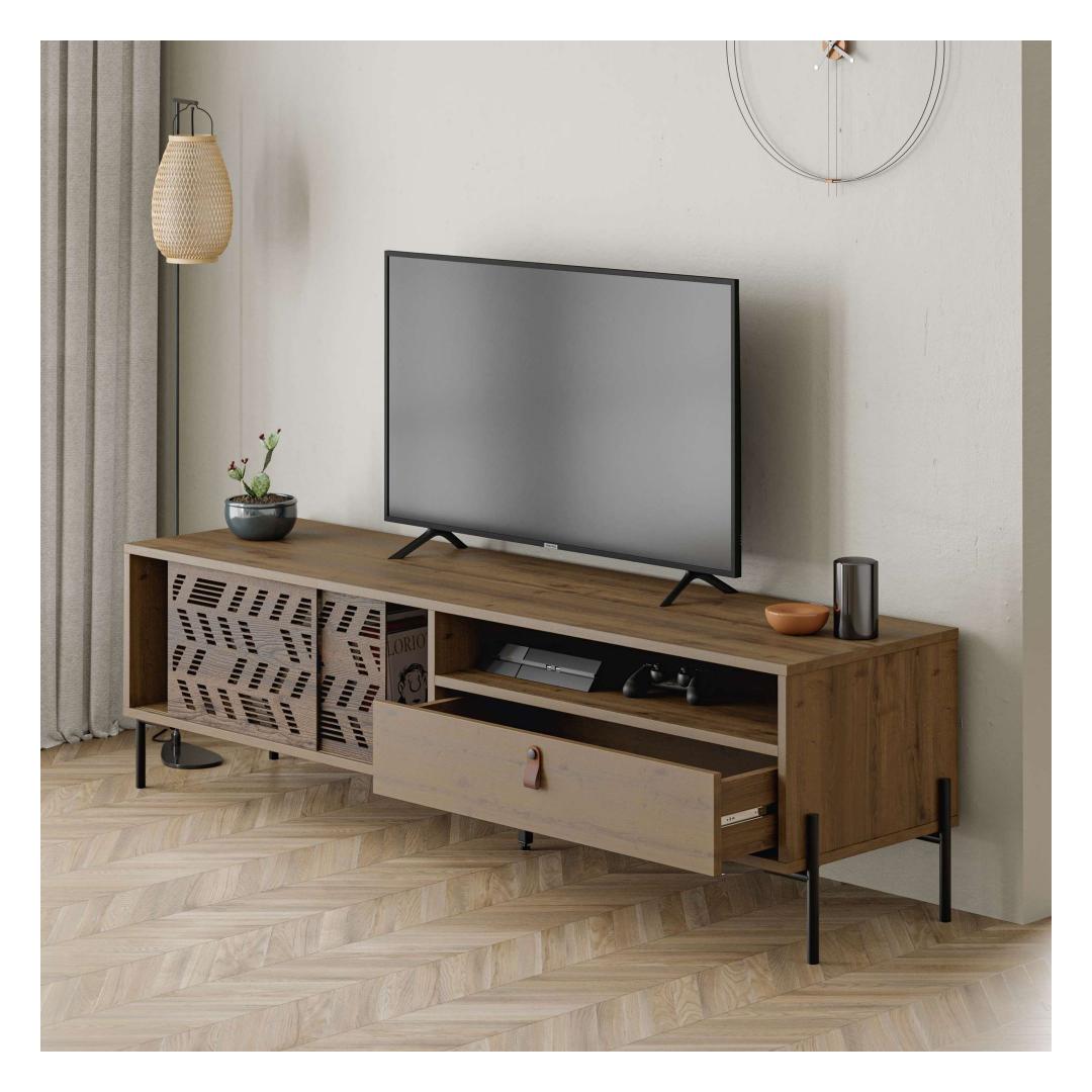 Muuda oma elutuba stiilseks ja organiseeritud ruumiks meie uimastava teleripuldiga. See teleripult ei ole lihtsalt mööblitükk, see on elegantsi ja elegantsuse avaldus. Kerge disain ja moodne viimistlus tõstavad koheselt teie meelelahutusruumi välimust, muutes selle ruumi keskpunktiks. Tõstke oma elutubaHüvasti segadusega ja tere organiseerimisele meie teleripuldi abil. See statiiv, millel on piisavalt ruumi kõigi teie oluliste meediakanalite jaoks, hoiab teie elutoa korralikult ja korras. Avarad riiulid sobivad ideaalselt teie lemmikdekoori esemete esitlemiseks, samal ajal kui kapid pakuvad peidetud hoiuruumi dvd-de, kaugjuhtimispultide ja muu jaoks. Kvaliteetne käsitööSee 100% melamiiniga kaetud puitlaastplaadist valmistatud telerialus on valmistatud kestma. 18 mm paksus tagab vastupidavuse ja stabiilsuse, samas kui hitit-värv lisab igasse tuppa elegantsi. Statiivi laius on 170cm, 48. 6cm kõrgusega ja 45cm sügavusega, mis teeb sellest ideaalse suuruse enamikku elutubadesse. Tehnilised üksikasjad:Materjal: Materjal: Materjal: Materjal: Materjal: Materjal: Materjal: Materjal: materjal: 100% melamiiniga kaetud puitlaastplaatPaksus: 18mmLaius: 170cmKõrgus: 48. 6cmSügavus: 45cmVärv: Hitit värv(id) Värv: Hitit