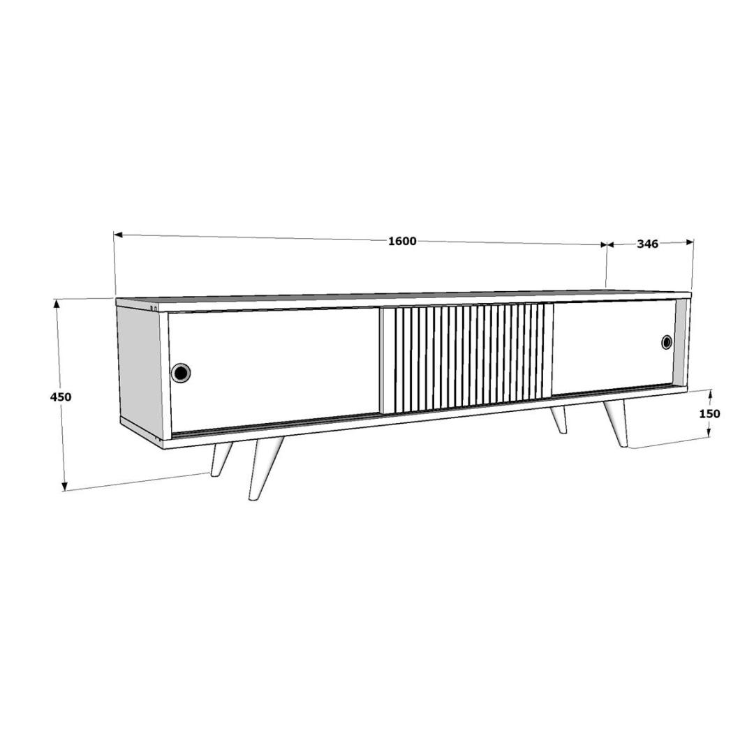 Featuring a generous width of 160 cm, this TV stand provides ample space to accommodate your television, gaming consoles, sound system, and more. The 18 mm thickness ensures sturdiness and durability, allowing you to confidently place your valuable electronics on it.