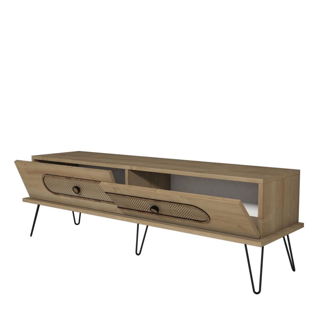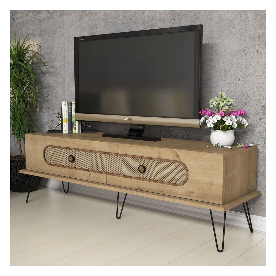 Loo stiilne ja funktsionaalne elutuba meie moodsa teleripuldigaSuurendage oma elutoa ilu meie uimastava teleripuldiga. See ülima täpsusega valmistatud teleripult on loodud lisama teie kodu sisustusele elegantsi. Selle kaasaegne ja uudne Chevroni disain avaldab kindlasti muljet teie külalistele ja muudab teie eluruumi silmapaistvaks.Kõrge kvaliteediga konstruktsioon vastupidavuse tagamiseksValmistatud 100% melamiiniga kaetud puitlaastplaadist, see televiisoripult on ehitatud kestma. 18 mm paksus tagab tugevuse ja stabiilsuse, samas kui 4 mm cnc-reljeef lisab unikaalse ja kunstilise puudutuse. Metallist jalad pakuvad suurepärast tuge ja lisavad üldisele disainile kaasaegset hõngu. Rikkalik hoiuruum organiseerimiseksTänu arvukatele riiulitele pakub see teleripult palju ruumi oma meediaseadmete, dvd-de ja muude oluliste asjade hoidmiseks. Hoidke oma elutuba selle funktsionaalse mööbliesemega segadusteta ja korrastatuna. Lisaks saab selle kinnitada seinale, et tagada lisaturvalisus ja stabiilsus. Tammepuust stiilne värv, mis täiendab mis tahes sisustustTeleri statiivil on ilus tamme värvi, mis sobitub vaevata mis tahes sisustusstiiliga. Olenemata sellest, kas teil on modernne või traditsiooniline sisustus, sobib see teleripult sujuvalt teie ruumi, lisades sellele elegantsi. Tehnilised üksikasjad:Materjal: Materjal: materjal: 100% melamiiniga kaetud puitlaastplaatPaksus: 18mmCNC reljeef: 4mmJalad: 20cm kõrgused metallist jaladMõõdud: Laius - 145cm, kõrgus - 45cm, sügavus - 40cm.Värv: Tamme värvi(d)Kontseptsioon: Kaasaegne - uudsus, Chevron disainUuendage oma elutuba meie moodsa teleripuldiga ja looge stiilne ja funktsionaalne ruum, kuhu teile meeldib koju tulla. Tellige kohe ja kogege täiuslikku segu ilust ja funktsionaalsusest. Värv: Oak
