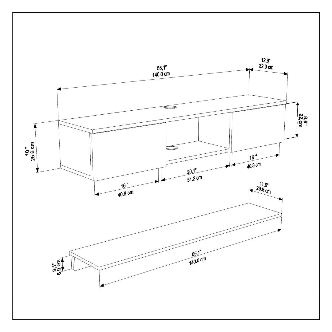 Width: 140 cm Height: 25,6 cm Depth: 32 cm