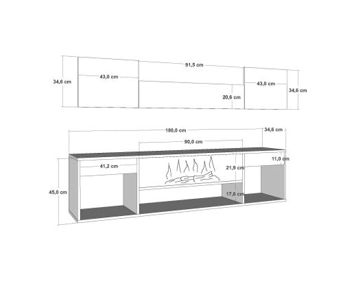 Width: 180 cm Height: 45 cm Depth: 34,6 cm