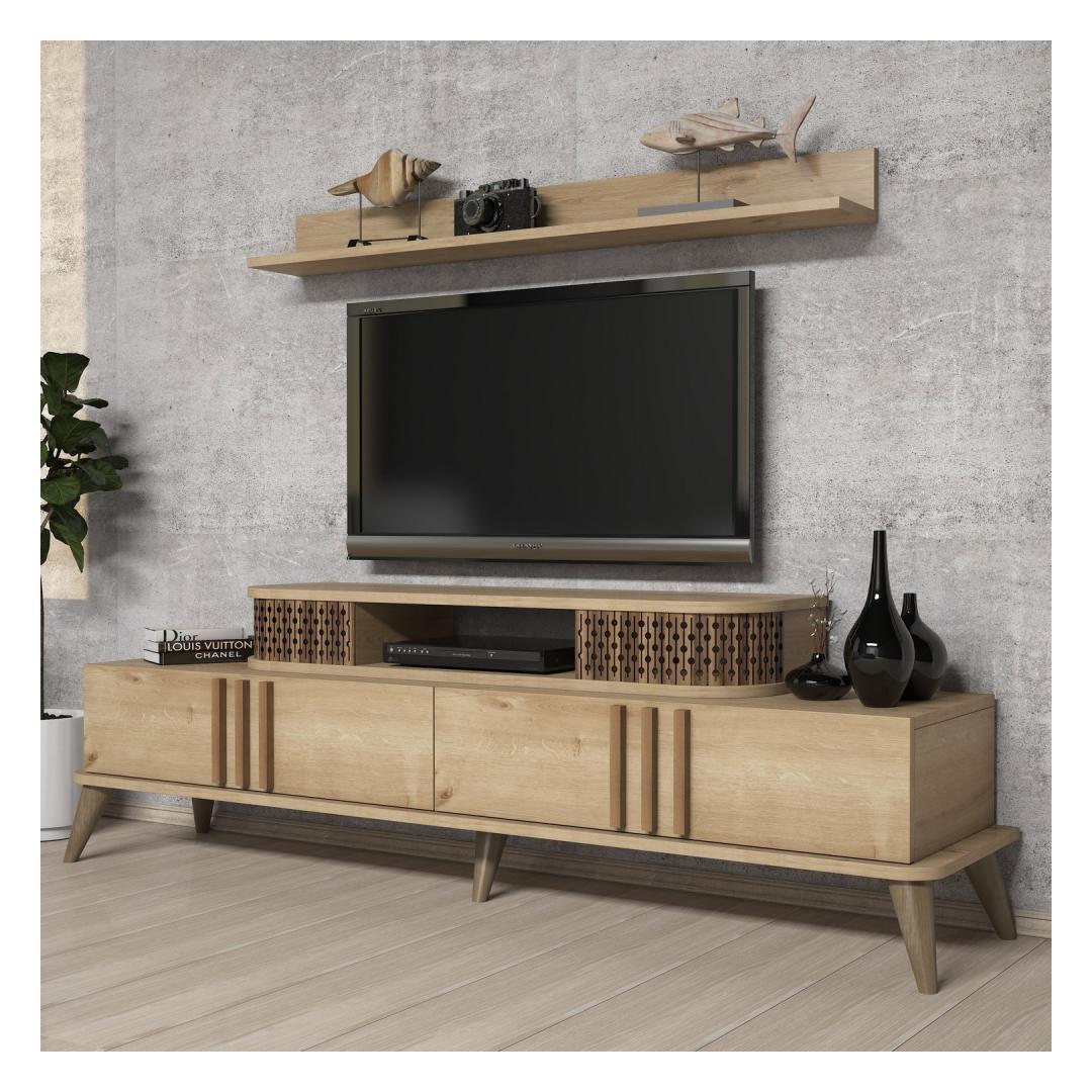 Tutvustame meie uimastavat televiisorikappi, mis on loodud nii stiili kui ka funktsionaalsuse toomiseks teie eluruumi. See kaasaegse ja uudse kontseptsiooniga teler on ideaalne täiendus igasse koju, olenemata sellest, kas eelistate kaasaegset või traditsioonilist esteetikat. Tõstke oma eluruum ülesMuutke oma elutuba stiilseks ja kutsuvaks ruumiks meie teleriga. Selle stiilne disain ja tammepuust värv(id) lisavad elegantsi ja rafineeritust, muutes selle iga ruumi keskpunktiks. 100% melamiiniga kaetud puitlaastplaat tagab vastupidavuse ja pikaealisuse, nii et saate seda telerikappi nautida aastaid.Rikkalik hoiuruumÜtle hüvasti segastele eluruumidele ja tere korraldatud õndsusele. Meie televiisoril on arvukalt riiuleid, mis pakuvad piisavalt ruumi teie meediaseadmete, raamatute ja dekoratiivsete esemete hoidmiseks. Teleriiul on ideaalse suurusega, et mahutada teie televiisor, samas kui seinariiul pakub täiendavat hoiuruumi teie lemmiktarvikutele. Monitööline ja praktilineMeie teleririiul ei paku mitte ainult palju hoiuruumi, vaid on ka uskumatult mitmekülgne. Seda saab kinnitada seina külge, mis võimaldab teil luua kohandatud ja turvalise seadistuse. Jalgade kõrgus 15 cm lisab elegantsust ja tagab lihtsa puhastamise seadme all. Tehnilised üksikasjad:Materjal: Materjal: Materjal: Materjal: Materjal: Materjal: Materjal: Materjal: materjal: 100% melamiiniga kaetud puitlaastplaatPaksus: 18 mmTelerikapi suurus: Laius: 168 cm, kõrgus: 51. 6 cm, sügavus: 39 cm.Jalgade kõrgus: 15 cmTV riiuli suurus: TV-riiuli suurus: Laius: 105 cm, kõrgus: 14. 6 cm, sügavus: 30 cm.Seina riiuli suurus: Laius: 120 cm, kõrgus: 11. 8 cm, sügavus: 16 cmVärv: Tamme värvi(d)Uuendage oma eluruumi meie teleriga ja kogege täiuslikku segu stiilist, funktsionaalsusest ja vastupidavusest. Tellige kohe ja muutke oma kodu mugavuse ja elegantsi paradiisiks. Värv: Oak