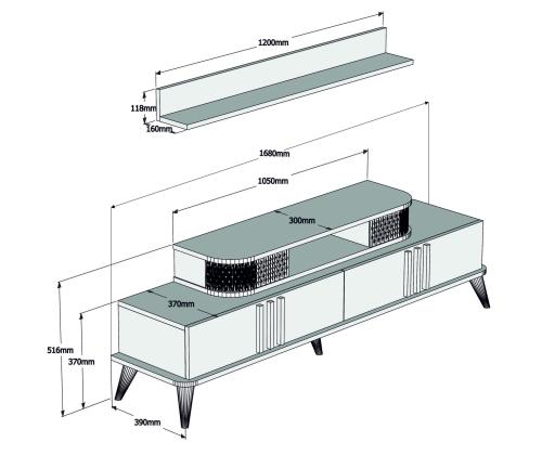 TV Unit Size : Width: 168 cm Height: 51,6 cm Depth: 39 cm