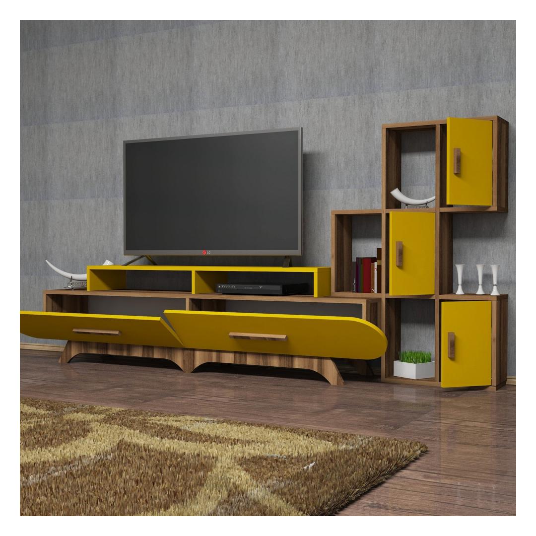 TV laud Flora S - Walnut, Yellow