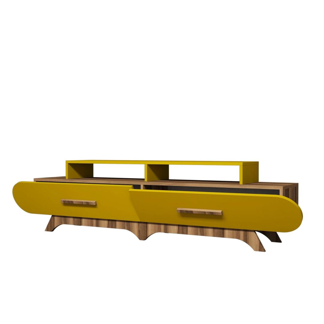 Loo oma elutuppa boheemlaslik oaas meie uimastava televiisorigaMuuda oma elutuba boheemlaslikuks paradiisiks meie suurepärase televiisoripuldiga. See detailidele ülima tähelepanuga valmistatud ese on loodud lisama elegantsi ja võlu igasse ruumi. Vabastage oma loovus lõputute hoiustamisvõimalustegaMeie televiisoripult pakub arvukate riiulitega rohkelt hoiuruumi kõigile teie meelelahutuslikele esmatähtsatele esemetele. Alates dvd-dest ja mängukonsoolidest kuni raamatute ja dekoratiivsete esemeteni saate näidata oma unikaalset stiili ja hoida kõike korrastatult ühes kohas.Kogege võrratut vastupidavust ja kvaliteeti100% melamiiniga kaetud puitlaastplaadist valmistatud teleripult on ehitatud kestma. 18 mm paksus tagab tugevuse ja stabiilsuse, samas kui pähklipuu ja kollase värvi kombinatsioon lisab teie elutuppa sooja ja elegantsi. Versatiivne disain mis tahes ruumi paigutuse jaoksOlenemata sellest, kas teil on väike korter või avar kodu, on meie teleritugi disainitud nii, et see sobitub sujuvalt mis tahes ruumi paigutusega. Laiuse 205 cm, kõrguse 50 cm ja sügavusega 36. 8 cm pakub see täiuslikku tasakaalu funktsionaalsuse ja stiili vahel. Maksimeerida oma ruumi seinakinnituse võimalusegaEt veelgi optimeerida oma ruumi, saab meie telerite statiivi hõlpsasti seinale kinnitada. See funktsioon mitte ainult ei lisa stabiilsust, vaid loob ka hõljuvat efekti, andes teie elutoale moodsa ja kaasaegse välimuse. Tehnilised üksikasjad:Materjal: Materjal: Materjal: Materjal: Materjal: Materjal: Materjal: Materjal: materjal: 100% melamiiniga kaetud puitlaastplaatPaksus: 18mmLaius: 205cmKõrgus: 50cmSügavus: 36,8cmRiiuli suurus: Laius: 130cm, kõrgus: 11cm, sügavus: 30cm.Värv: Pähklipuu ja kollaneArvukad riiulid pakuvad rohkelt hoiuruumiSaab kinnitada seinale, et lisada stabiilsust ja stiili. Värv: Walnut Yellow