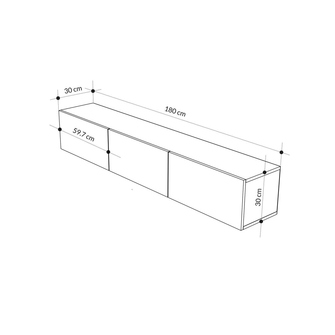 Width. 180 cm Height: 30 cm Depth: 30 cm