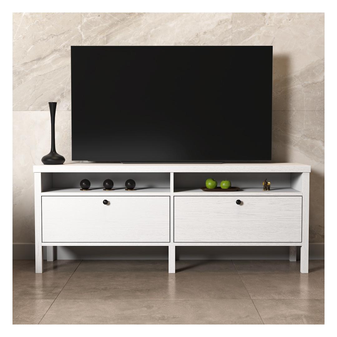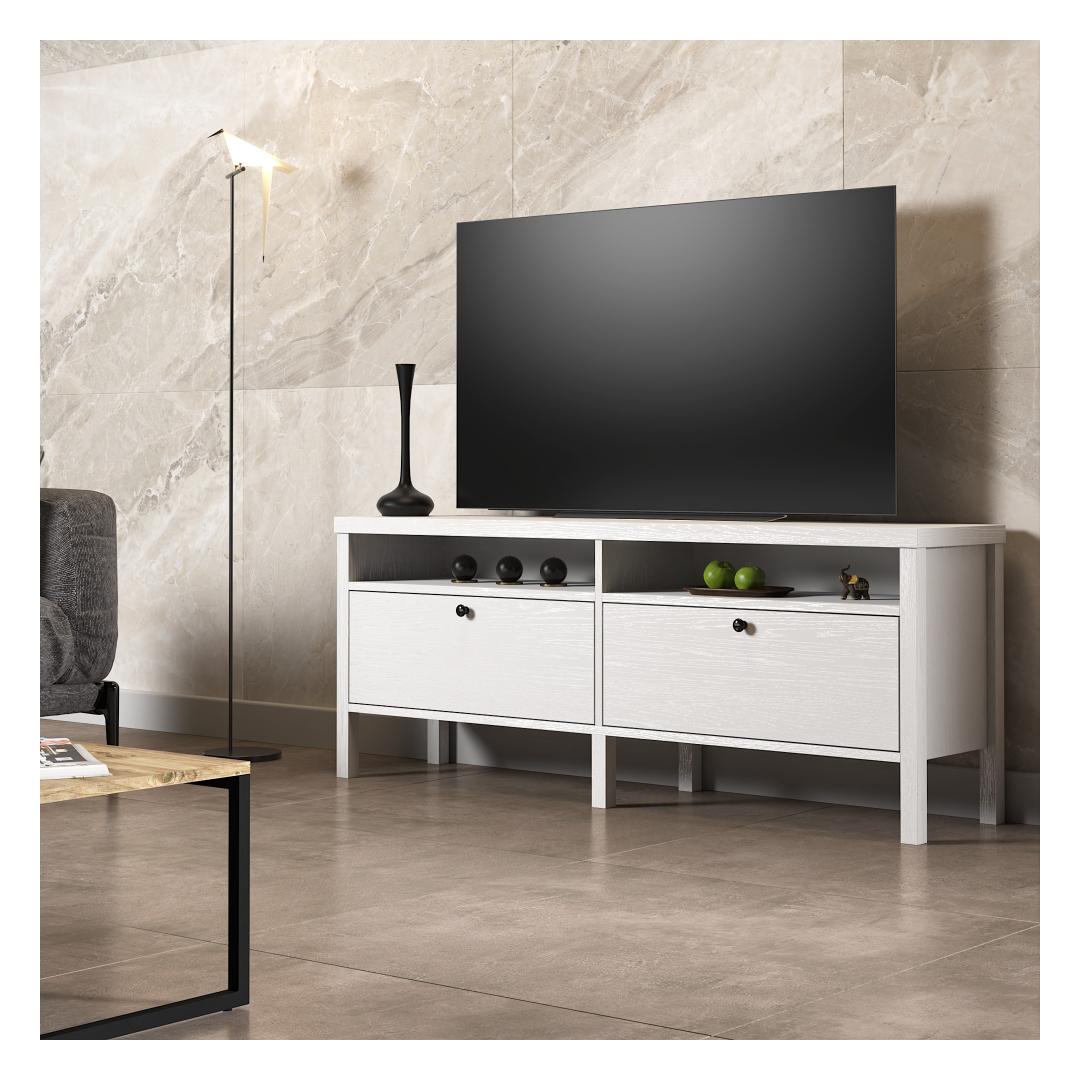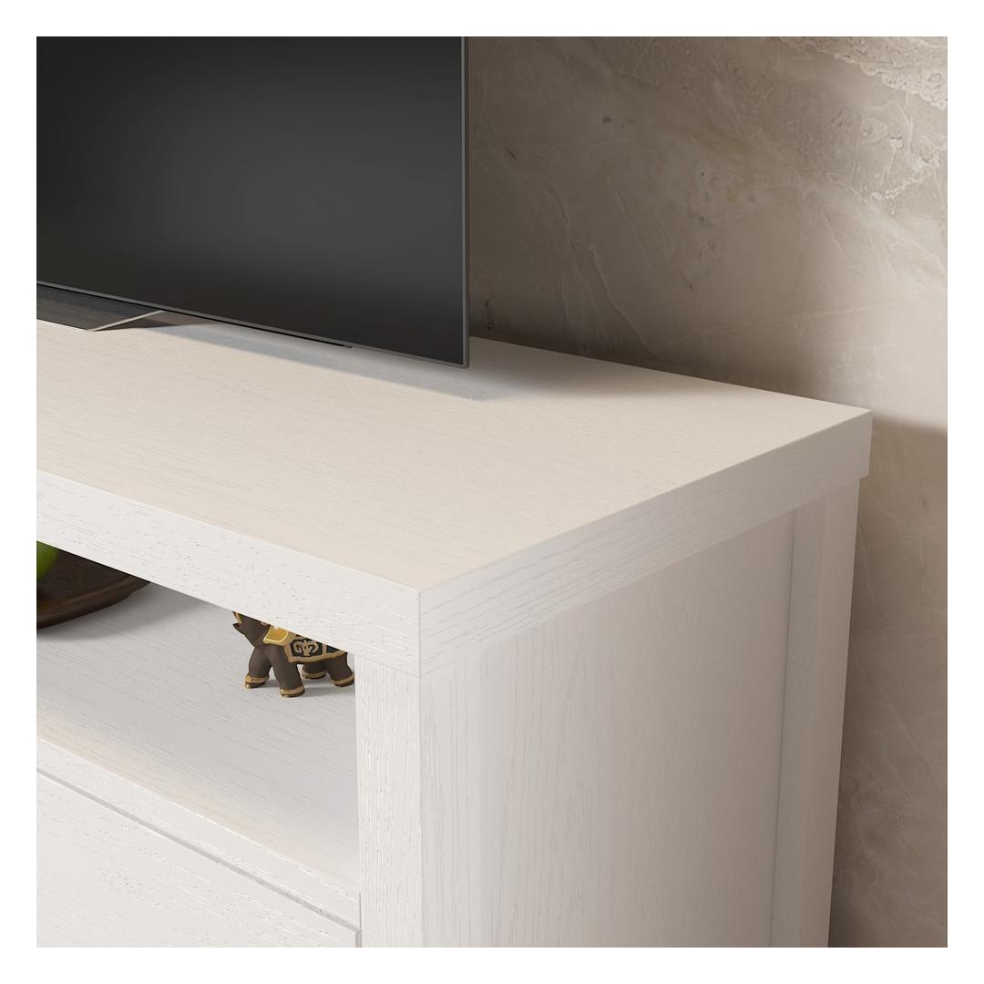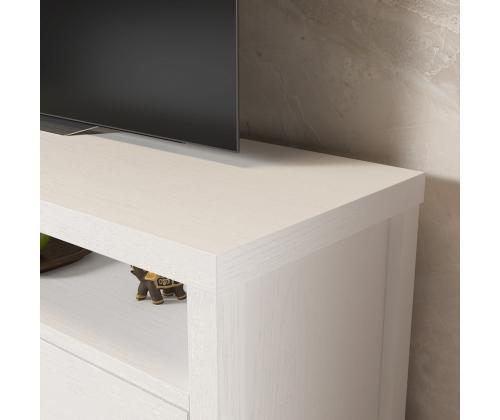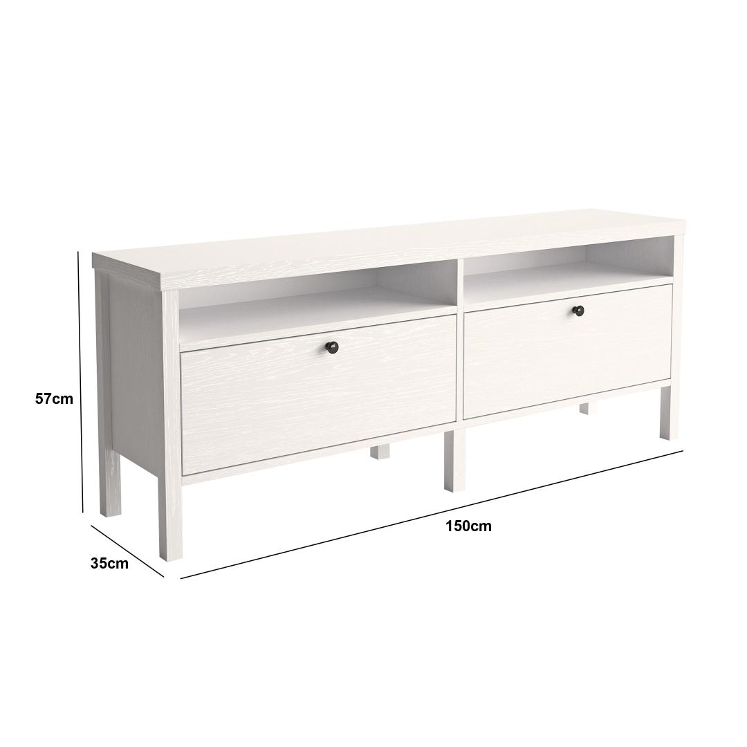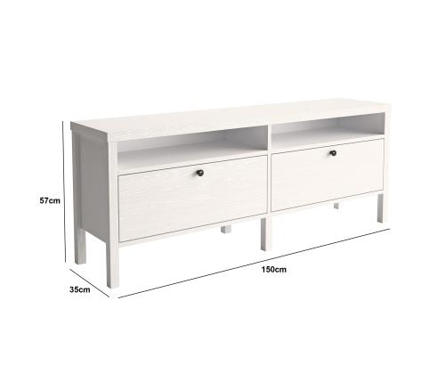 Crafted from 100% chipboard and featuring a sturdy MDF frame, this TV stand is built to last. The 18mm thickness and 0.8mm PVC band ensure durability and longevity, while the 15cm legs provide stability.