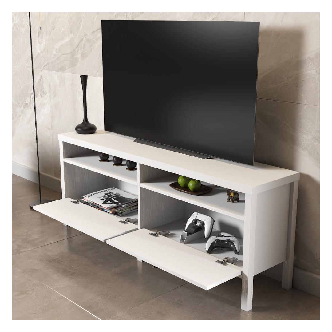 Transform your living room into a stylish and organized space with our modern TV stand. This sleek and elegant piece is designed to not only hold your television securely, but also to provide ample storage for all your media essentials.