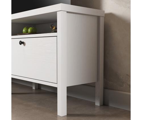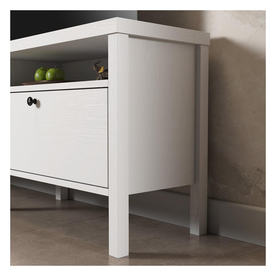 With its contemporary design and versatile color scheme, this TV stand will effortlessly elevate the look of any room. The combination of wooden and white finishes adds a touch of sophistication, while the metal handle adds a modern flair.