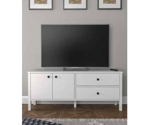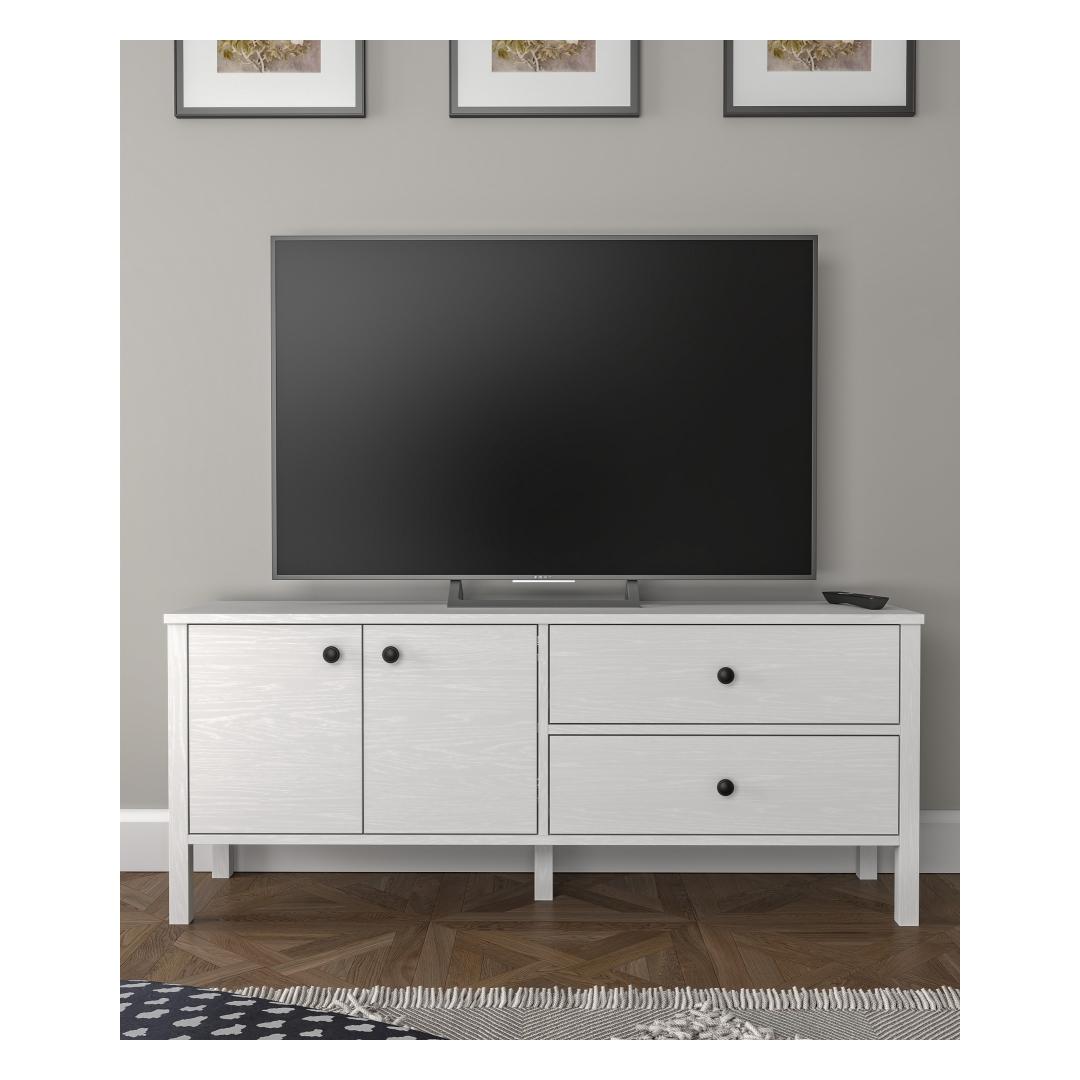 This TV stand can be easily fixed to the wall for added safety and stability. Enjoy peace of mind knowing that your TV stand is securely in place.