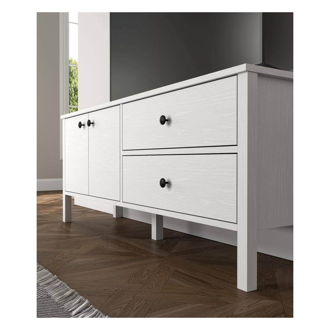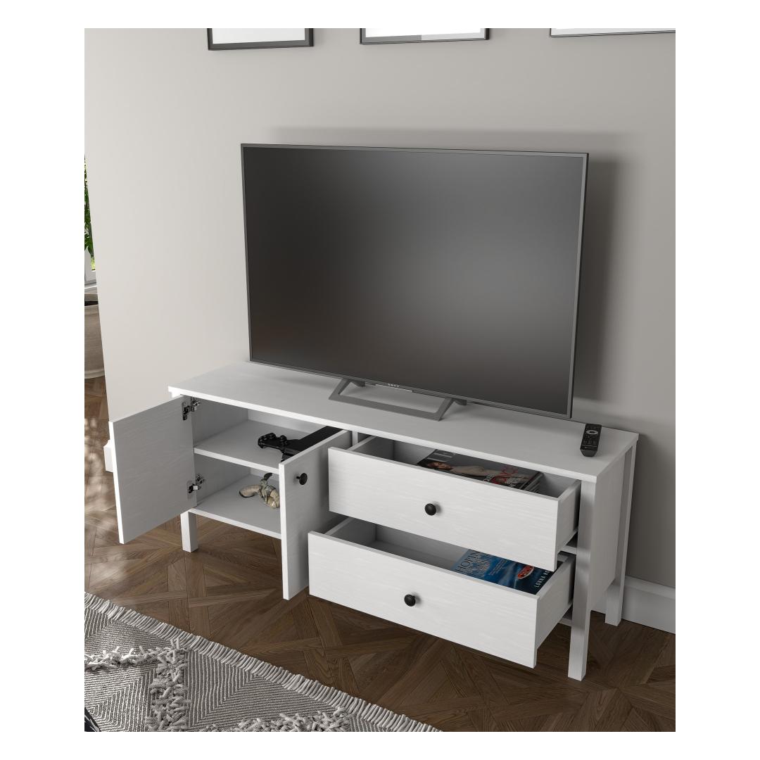 Made from 100% melamine coated particle board, this TV stand is built to last. The 18mm thickness and 0.8mm edge banding ensure durability and stability, while the leg's height of 15cm provides ample support for your TV.