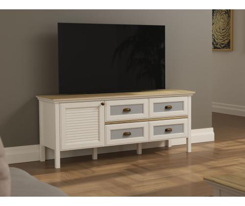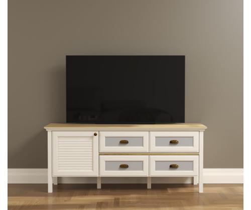 With a width of 149.6 cm, height of 61.6 cm, and depth of 44.2 cm, this TV stand offers ample space for your television and other entertainment essentials. The MDF profile legs and metal handles add a touch of sophistication to the overall design, while the cream, oak, and grey colors create a modern and chic look.