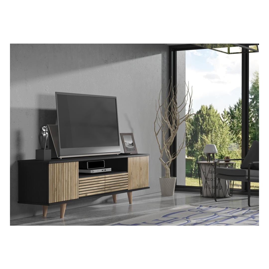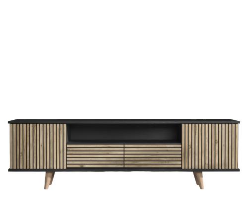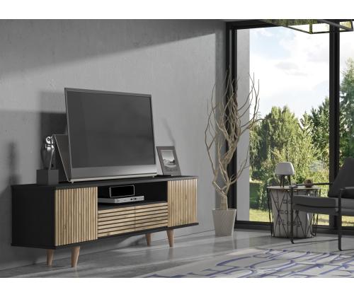 Constructed with 18 mm chipboard and a 0.8 mm PVC band, this TV stand is built to last. The MDF frame adds extra stability, while the 17 cm legs provide sturdy support. You can also choose to fix it to the wall for added security.