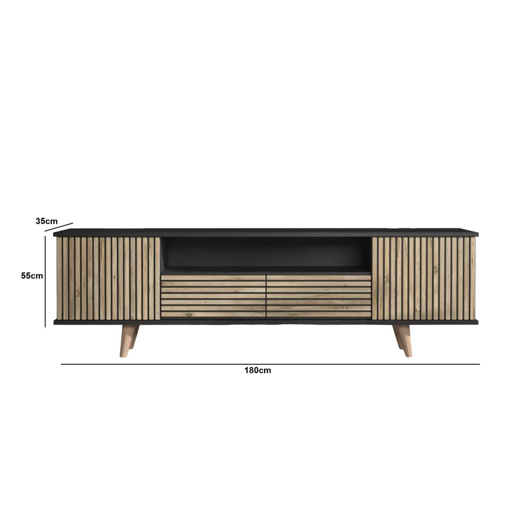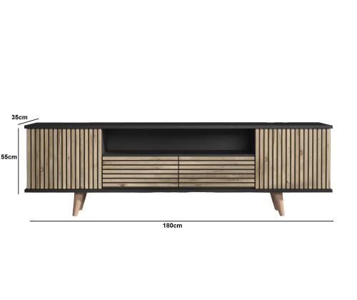 With a width of 180 cm, height of 55 cm, and depth of 35 cm, this TV stand offers ample storage space for all your media essentials. The numerous shelves provide plenty of room for your DVD player, gaming consoles, and more, keeping your living room organized and clutter-free.