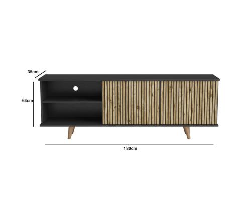 With a width of 180 cm, height of 64 cm, and depth of 35 cm, this TV stand offers ample space for your television and accessories. The leg's height of 16 cm adds a touch of sophistication, while the option to fix it to the wall provides added security and stability.