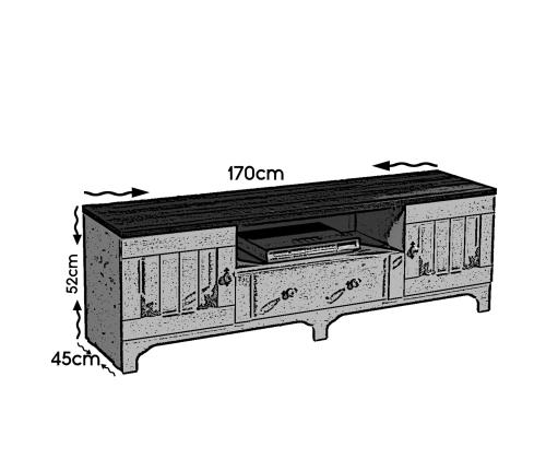 Measuring at a width of 170cm, height of 52cm, and depth of 45cm, our TV stand is the ideal size for any living room. Its sleek and compact design allows it to seamlessly blend into any space, making it a versatile addition to your home decor.