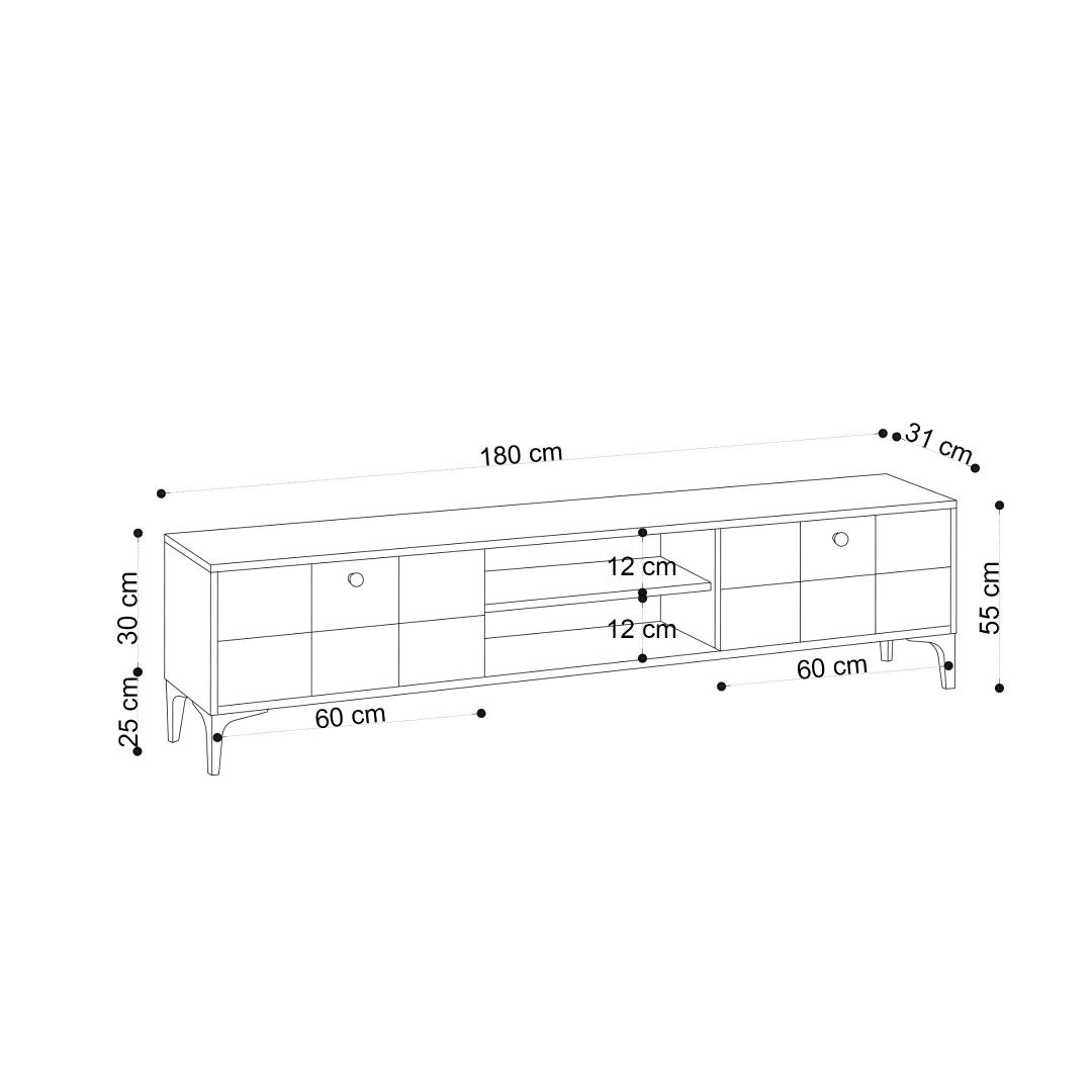 Width: 180 cm Height: 55 cm Depth: 31 cm