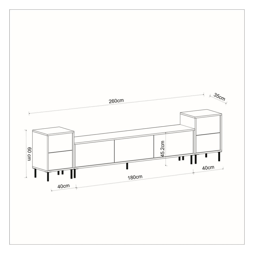 TV Stand: Width: 180 cm Height: 45,2 cm Depth: 35 cm