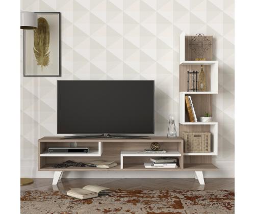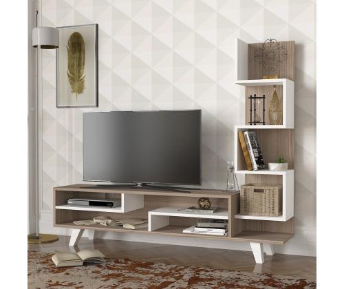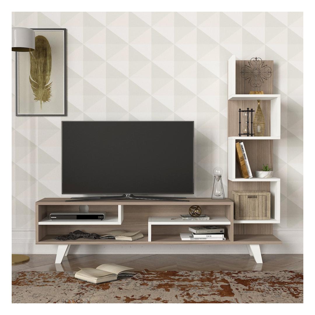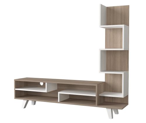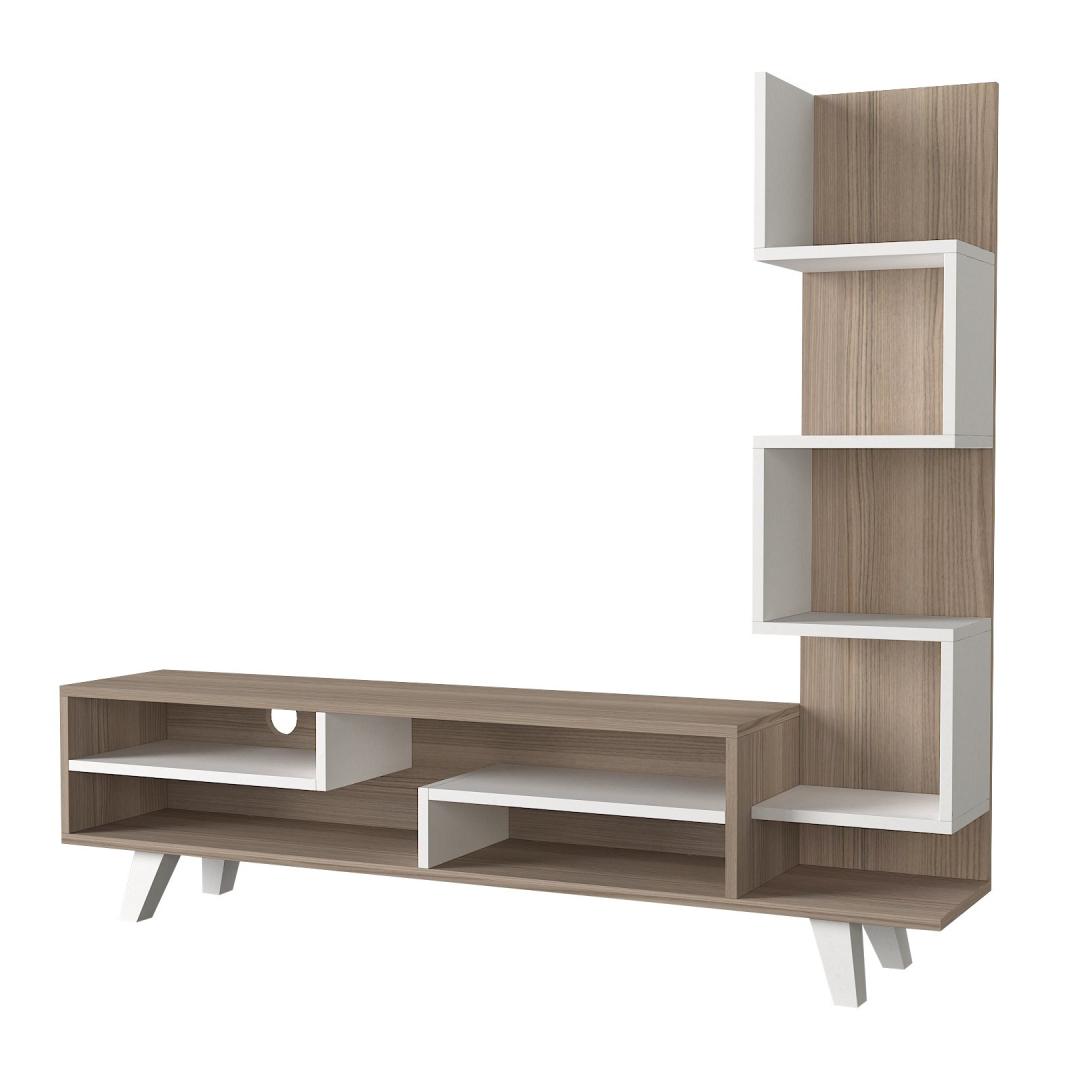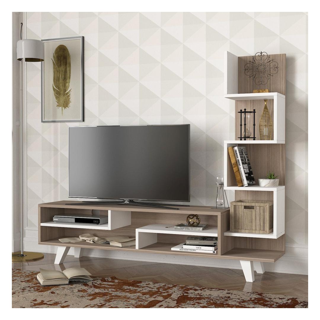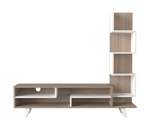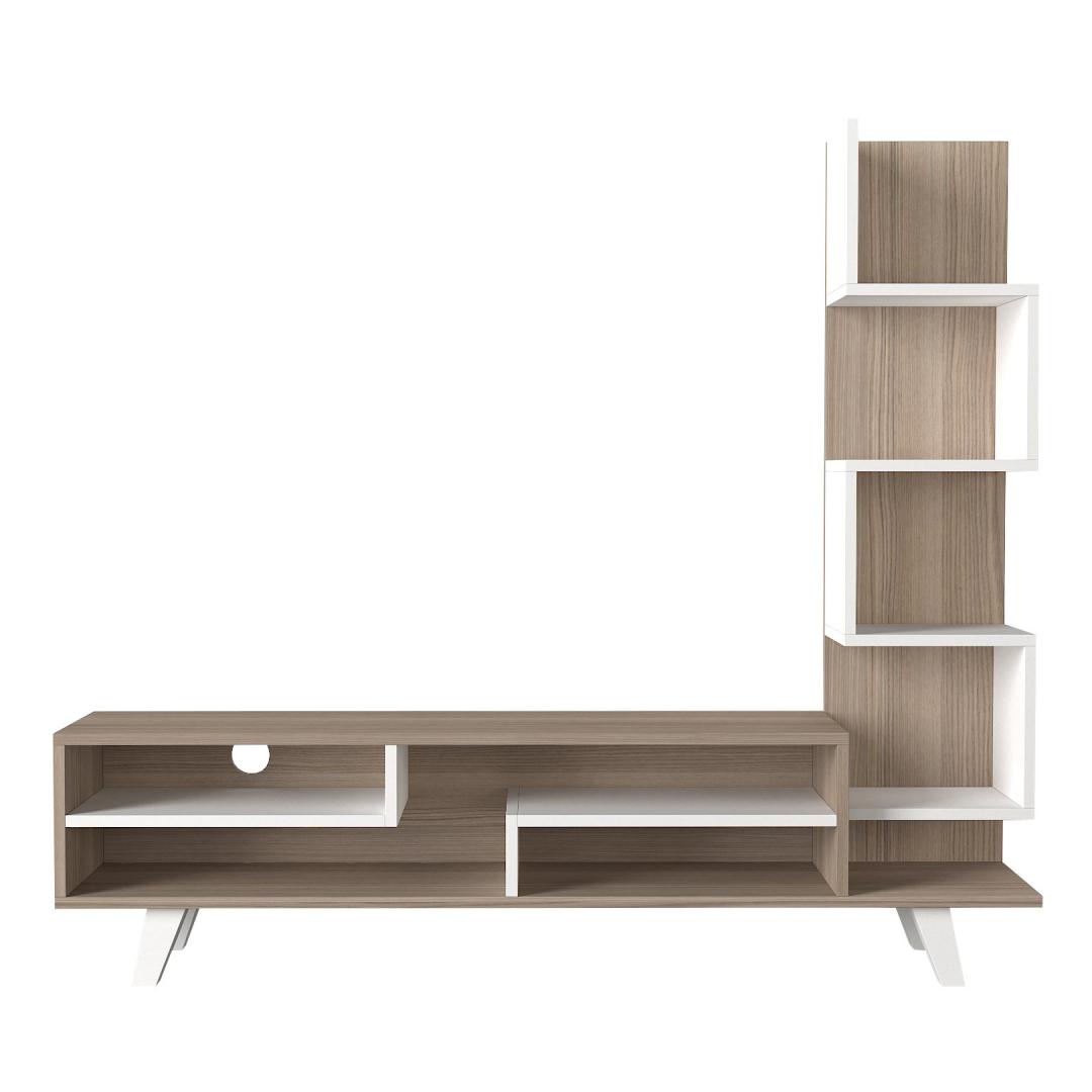 The sleek white and Cordoba color combination adds a touch of sophistication to your decor, while the clean lines and minimalist design capture the essence of Scandinavian style. The TV panel provides ample space for your television, while the bookshelf offers additional storage for books, decor, or media accessories.