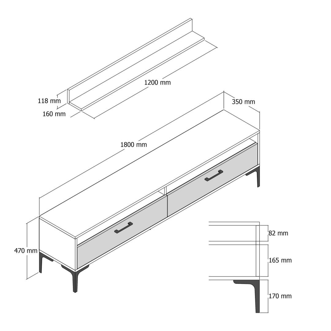 TV Stand: Width: 180 cm Height: 47 cm Depth: 35 cm