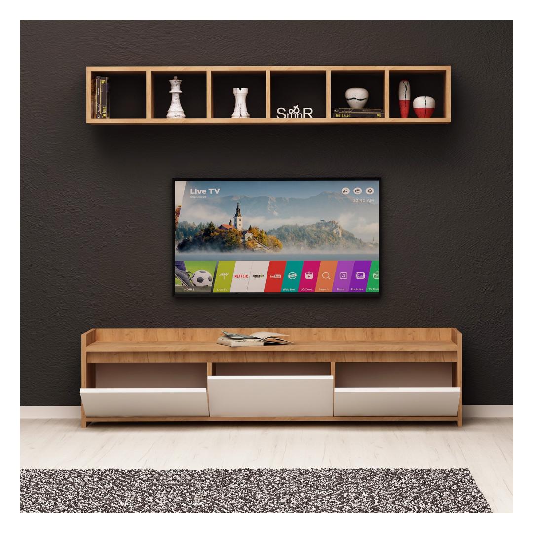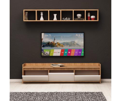 Välistage oma eluruumi kaasaegse ja stiilse televiisorigaMuutke oma elutuba stiilseks ja rafineeritud elutoaks meie uimastava teleriga. See ülima hoole ja tähelepanelikkusega valmistatud mööbel on mõeldud teie ruumi esteetilisuse tõstmiseks, pakkudes samal ajal praktilisi hoiulahendusi. Vabastage oma loovus arvukate riiulitegaTänu arvukatele riiulitele pakub see televiisor piisavalt hoiuruumi kõigile teie meelelahutuslikele esmatähtsatele asjadele. Esita oma lemmikraamatuid, dekoratiivseid esemeid või perefotosid seinariiulil, lisades oma elutuppa isikliku tooni. Kogemused võrratu vastupidavus ja kvaliteetValmistatud 100% melamiiniga kaetud puitlaastplaadist, on see telerikomplekt ehitatud kestma. 18 mm paksus tagab tugevuse ja stabiilsuse, mis võimaldab teil nautida oma meelelahutuskeskust aastaid. Loo kaasaegne ja uudne välimusTamme ja valge kombinatsiooniga ühevärvilise kontseptsiooniga telerikomplekt lisab teie eluruumile modernsust ja uudsust. Kerge disain ja puhtad jooned muudavad selle ideaalselt sobivaks iga kaasaegse kodu sisustuse jaoks. Tehnilised üksikasjad:Materjal: Materjal: Materjal: Materjal: Materjal: Materjal: Materjal: Materjal: materjal: 100% melamiiniga kaetud puitlaastplaatPaksus: 18mmTelerikapi suurus: Laius: 150 cm, kõrgus: 45 cm, sügavus: 35 cm.Seina riiuli suurus: Laius: 150 cm, kõrgus: 25 cm, sügavus: 20 cmVõimalik kinnitada seinale, et tagada stabiilsus ja turvalisusVärv: Tamm ja valgeUuendage oma elutuba meie moodsa ja stiilse televiisoriga. Kogege funktsionaalsuse ja esteetika täiuslikku segu ning looge ruum, mis peegeldab tõeliselt teie isiklikku stiili. Tellige kohe ja muutke oma elutuba elegantsi ja rafineerituse paradiisiks. Värv: Oak White