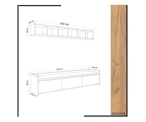 Tv Unit Size: Width: 150 cm Height: 45 cm Depth: 35 cm