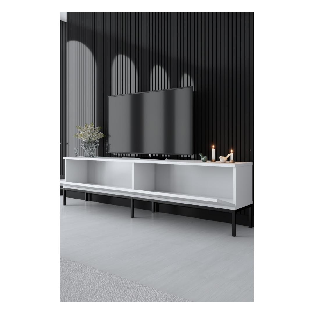 With a width of 180cm, height of 47cm, and depth of 30cm, this TV stand offers ample space to accommodate your television, gaming consoles, and other media devices. Its black and white color combination adds a modern and sophisticated touch to any room, effortlessly blending with various interior styles.