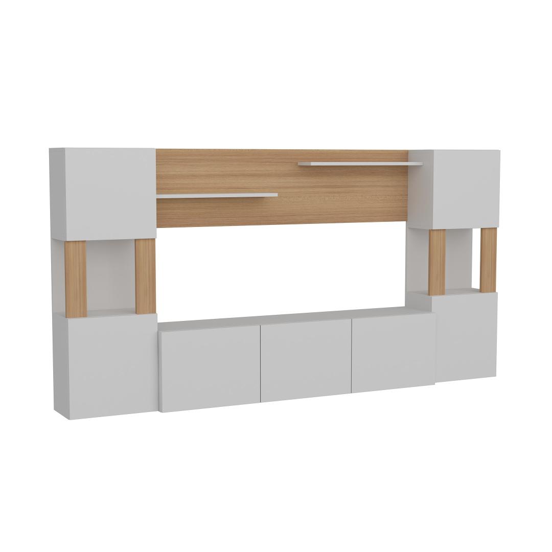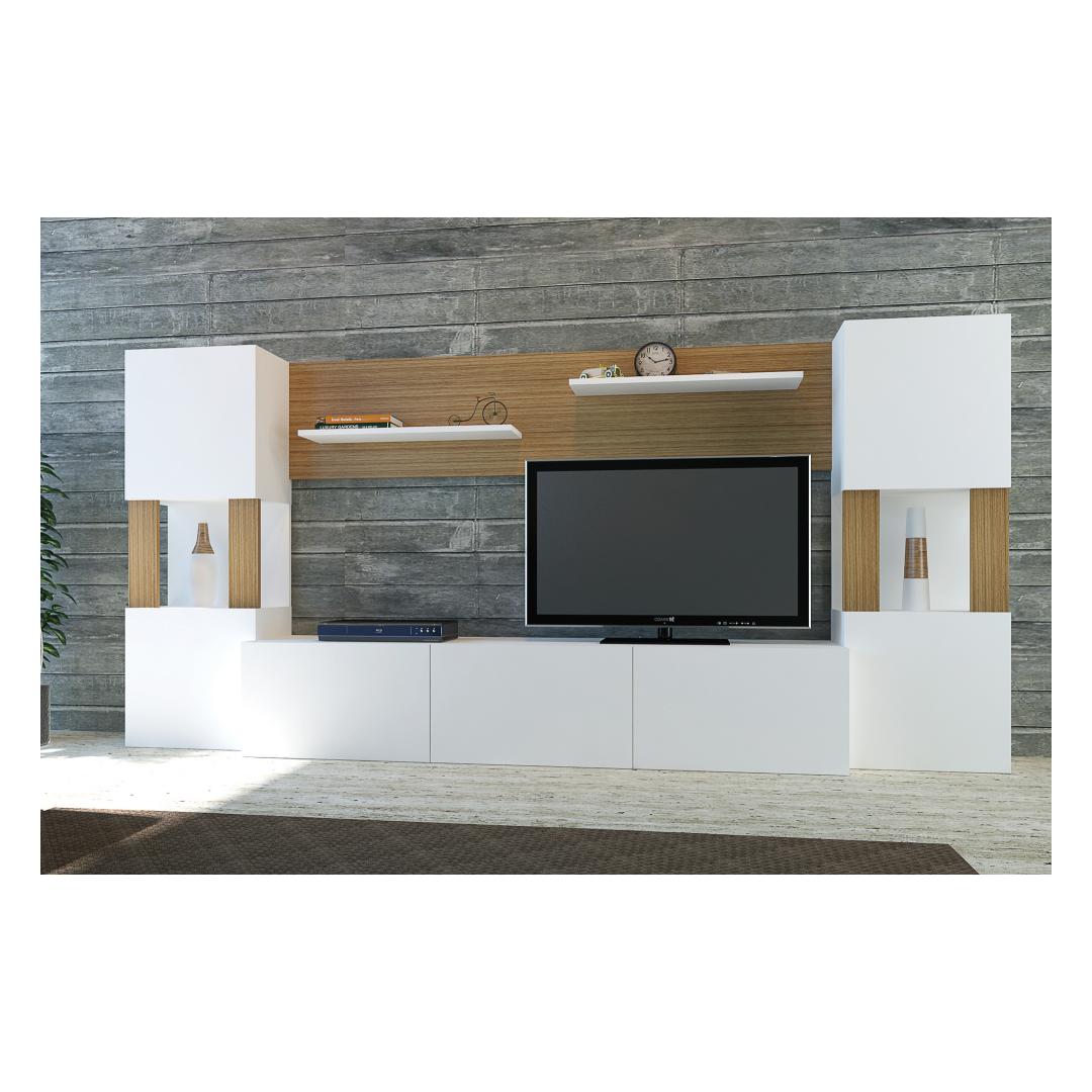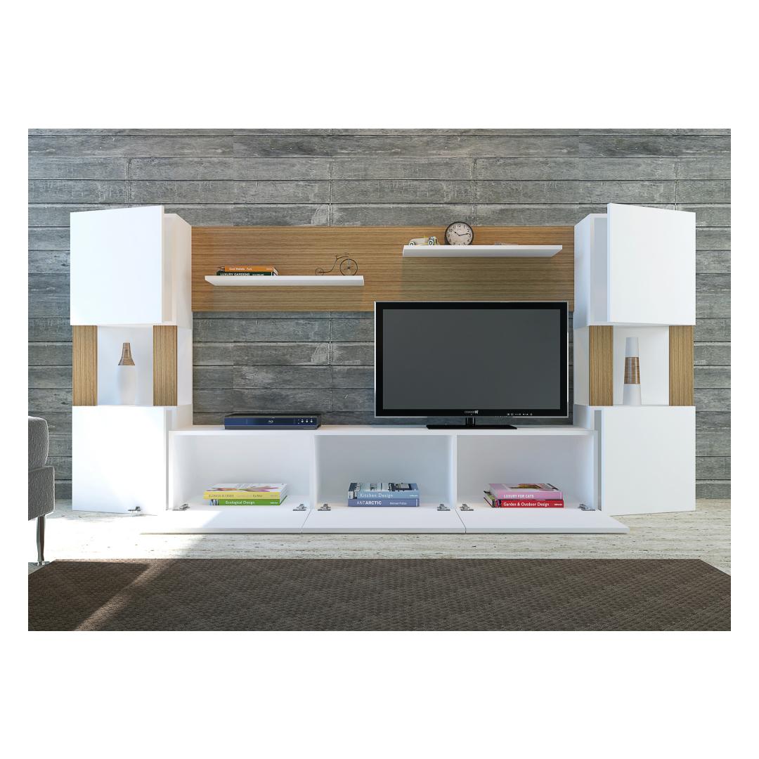 The solid color and modern novelty concept of our TV unit make it a versatile addition to any home decor. The combination of white and teak colors adds a touch of sophistication and elegance, making it the perfect centerpiece for your living room.