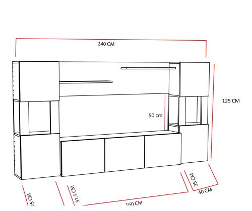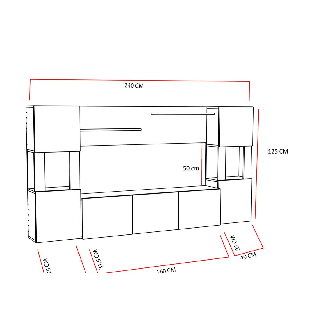 - TV Stand Size: Width: 160 cm, Height: 125 cm, Depth: 31.5 cm