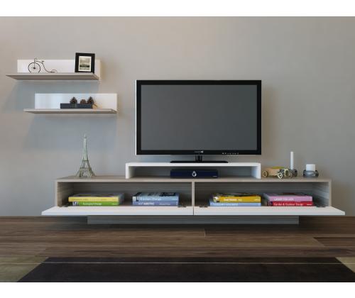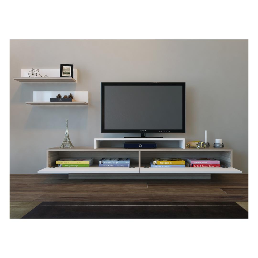 Not only does this TV unit enhance the aesthetics of your living room, but it also offers practicality. It can be easily fixed to the wall, ensuring stability and safety. The dimensions of the unit, with a width of 180 cm, height of 40 cm, and depth of 31 cm, make it suitable for any room size.