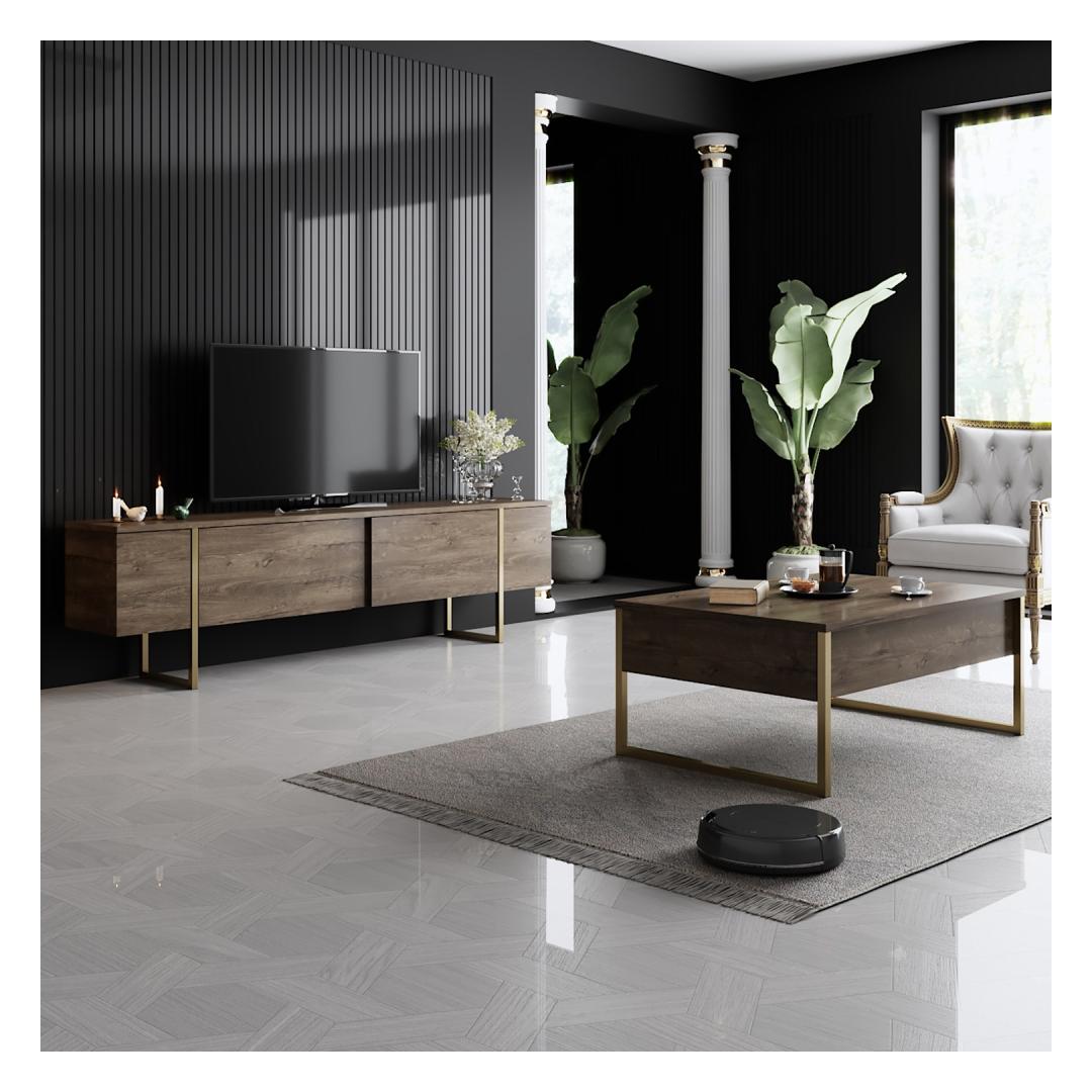 TV Stand Luxe - Walnut, Gold