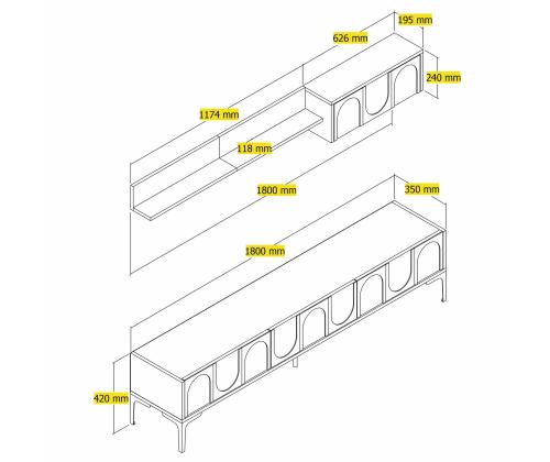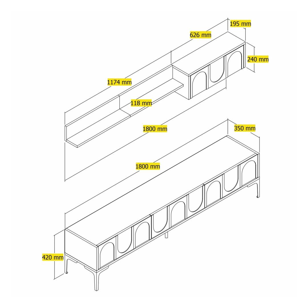TV Stand: Width: 180 cm Height: 42 cm Depth: 35 cm