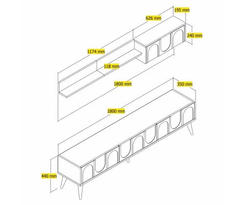 TV Stand: Width: 180 cm Height: 44 cm Depth: 35 cm