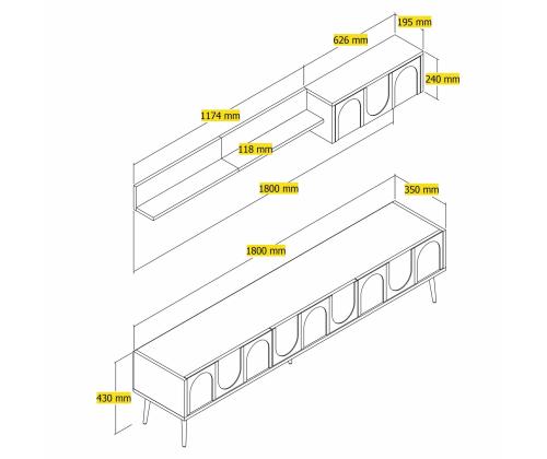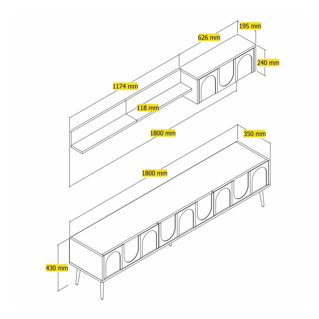 TV Stand: Width: 180 cm Height: 43 cm Depth: 35 cm