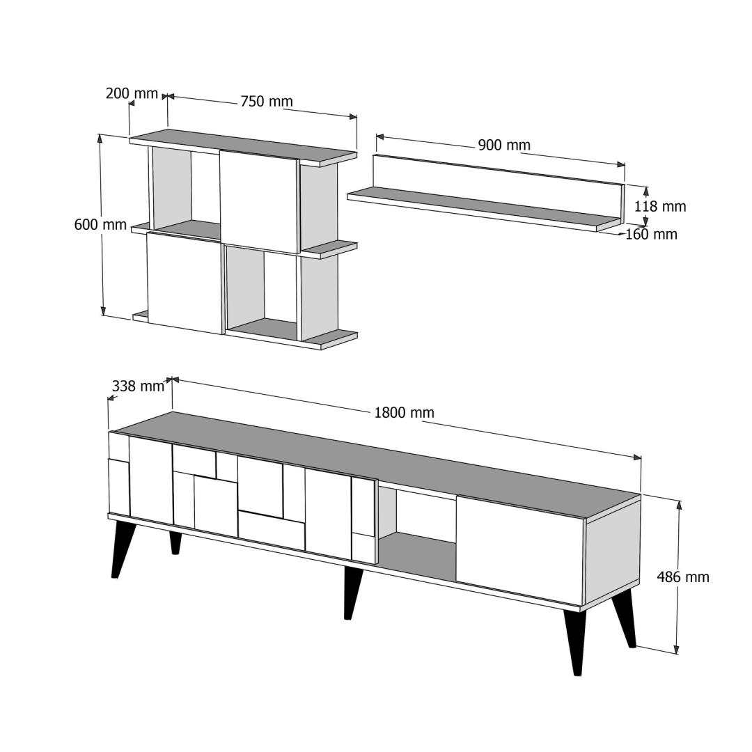 TV Unit Size: Width: 180 cm Height: 48,6 cm Depth: 33,8 cm