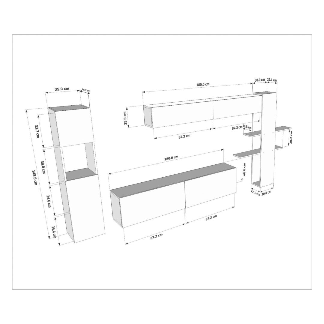 Tv Stand Size: Width: 215 cm Height: 150 cm Depth: 31,5 cm