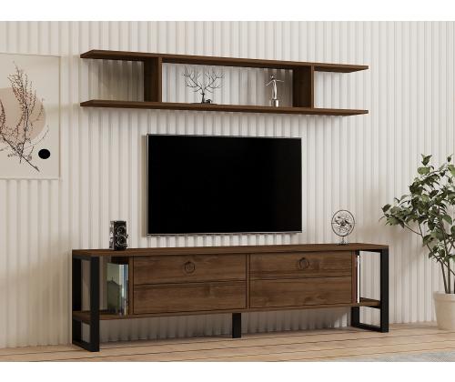 Transformeeri oma eluruum tööstusliku rustikaalse televiisorigaParandage oma elutoa atmosfääri meie uimastava industriaalse rustikaalse teleriga. See ülima täpsusega valmistatud televiisor on loodud lisama teie kodu sisustusse elegantsust ja elegantsust. Täiuslik kvaliteet ja vastupidavusValmistatud 100% melamiiniga kaetud puitlaastplaadist, tagab see telerikapp erakordse vastupidavuse ja pikaajalise toimivuse. 18 mm paksus tagab tugevuse, pakkudes usaldusväärset tuge teie televiisorile ja teistele elektroonikaseadmetele.Stiilne disain ja mitmekülgsusSee metallist jalgadega televiisorilahendus annab tööstusliku võlu, mis täiendab vaevata mis tahes sisustustüüpi. Pähklipuu värvus lisab maalähedast tooni, luues teie eluruumi sooja ja kutsuva atmosfääri. Rikkalik hoiuruumTänu arvukatele riiulitele ja täiendavale hoiuruumile pakub see telerikapp piisavalt ruumi oma meediaseadmete, dvd-de ja muude oluliste esemete korraldamiseks. Seina riiul pakub täiuslikku kohta oma lemmikdekoratiivsete esemete esitlemiseks, lisades teie elutuppa isikliku tooni. Lihtne paigaldamine ja stabiilsusSee telerikomplekt on mõeldud seinale kinnitamiseks, mis tagab stabiilsuse ja ohutuse. Lihtne paigaldusprotsess võimaldab teil oma uut mööblieset kiiresti ja ilma probleemideta nautida. Tehnilised üksikasjad:Materjal: Materjal: Materjal: Materjal: Materjal: Materjal: Materjal: Materjal: materjal: 100% melamiiniga kaetud puitlaastplaatPaksus: 18mmMetallist jalad lisavad stabiilsustTeleri stendi suurus: Laius: 160 cm, kõrgus: 45 cm, sügavus: 30 cm.Seina riiuli suurus: Laius: 150 cm, kõrgus: 25 cm, sügavus: 20 cmVärv: PähkelpuuKontseptsioon: Tööstuslik, rustikaalne Värv: Walnut
