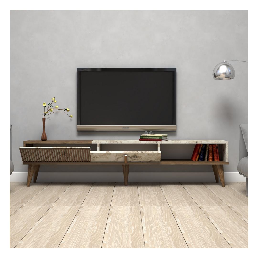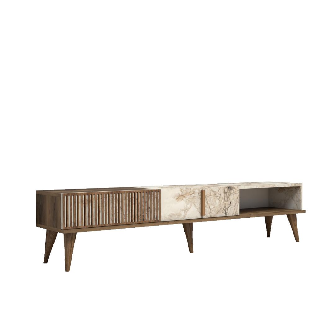 TV laud Milan - Walnut, White Marble
